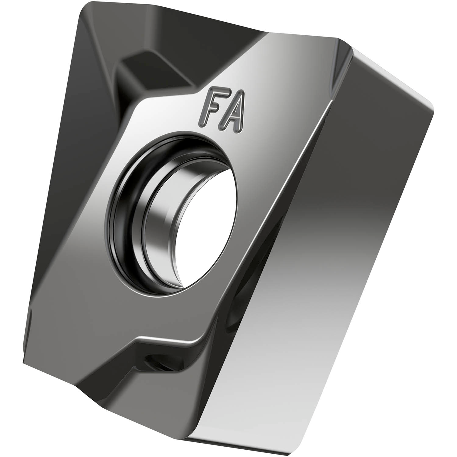 Double-sided milling insert LNGU 1607 with chip-breakers, rectangular for a maximum depth of cut of 13.0mm, with 0.8mm corner radius, an indexing accuracy according to ISO-tolerance class-G and FA geometry with sharp cutting edges, HF7 uncoated fine grained WC-Co carbide within ISO-grade range N10 -N25 for machining of non-ferrous metal with shoulder mills SLN16