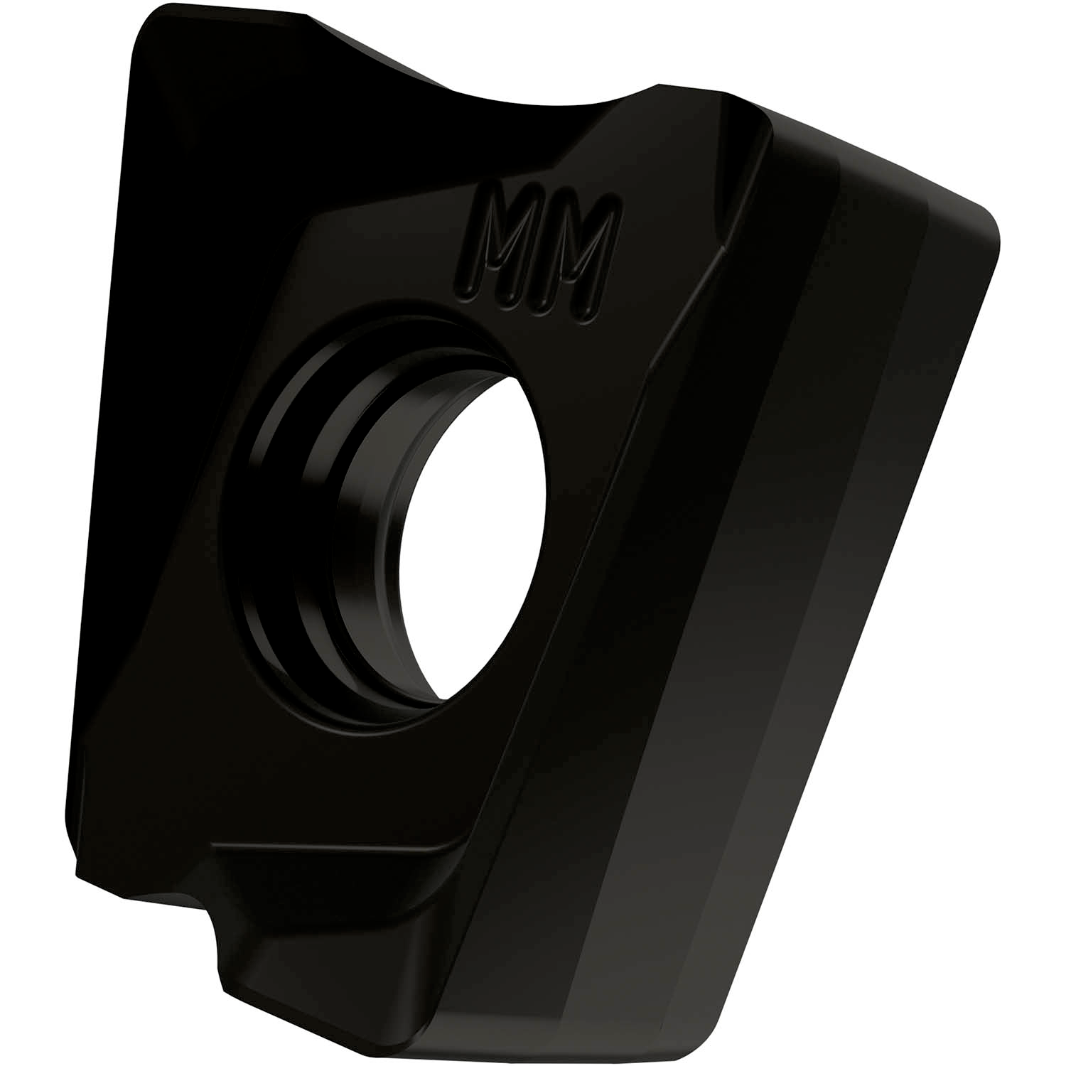 Double-sided milling insert LNGX 1205, rectangular for a maximum depth of cut of 9.0mm, with 0.8mm corner radius, an indexing accuracy according to ISO-tolerance class-G and MM geometry with rounded cutting edges and facet, M9340 MT-CVD coated WC-Co carbide within ISO-grade ranges P35 -P50 and M30 -M40 for machining of steel and stainless-steel with shoulder mills SLN12