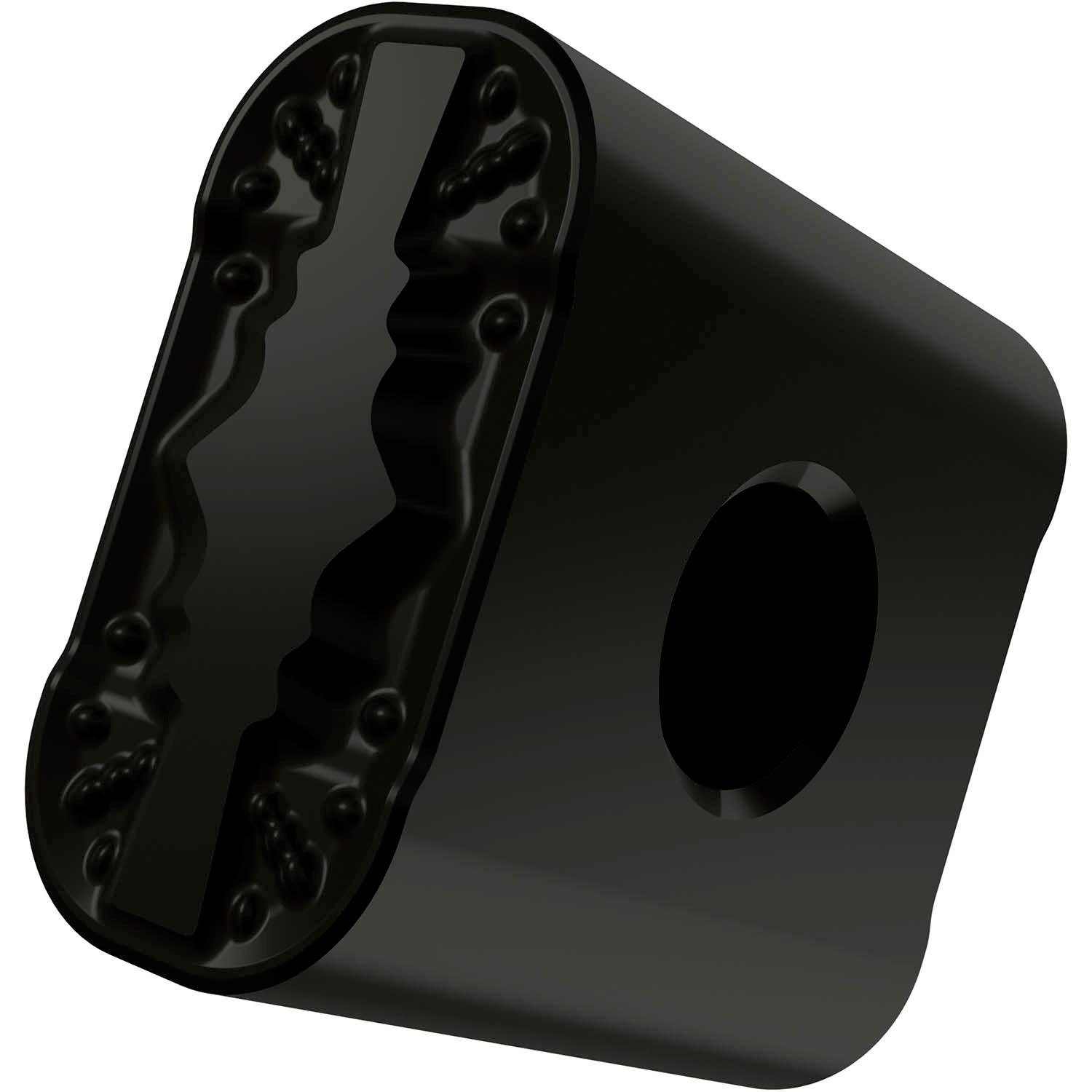 Special design negative turning insert, rectangular with a main edge length of 19.05mm, 4mm nose radius, indexing accuracy according to ISO-tolerance class-M, chip-breaker RM with rounded cutting edges with facet, in grade T9310, a MT-CVD coated functionally graded WC-Co carbide within ISO range P10 -P25, for medium to heavy machining of steels