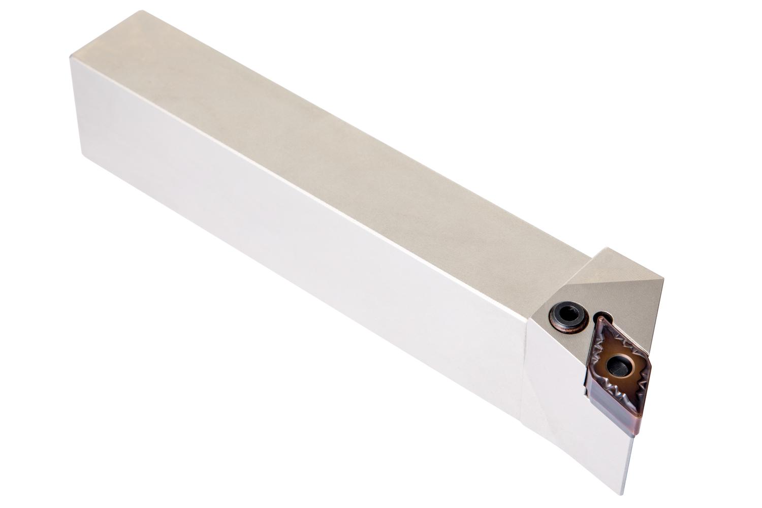Lever lock turning tool for holding a 55° rhombus negative insert with an inscribed circle diameter of 12.7mm, 6.35mm thick (ISO designation DN.. 1506.. ), left hand special tool style, 32mm tool height x 25mm width x 170mm long for taper turning, single and multi-directional copy turning and longitudinal turning with and without shoulder