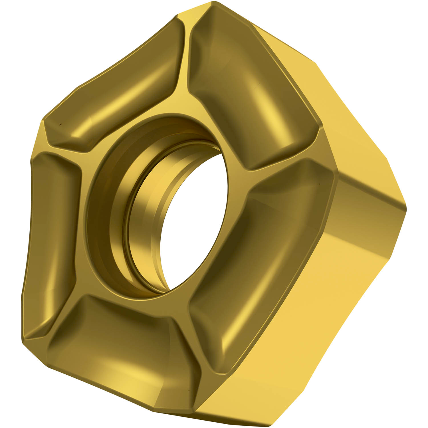 Double-sided milling insert PNMU 1308 with chip-breakers, pentagonal for a maximum depth of cut of 10.0mm, with an indexing accuracy according to ISO-tolerance class-M and M geometry with rounded cutting edges and facet, M8330 PVD coated fine grained WC-Co carbide within ISO-grade ranges P20 -P40 and K20 -K40 for machining of steel and cast-iron with face mills SPN13