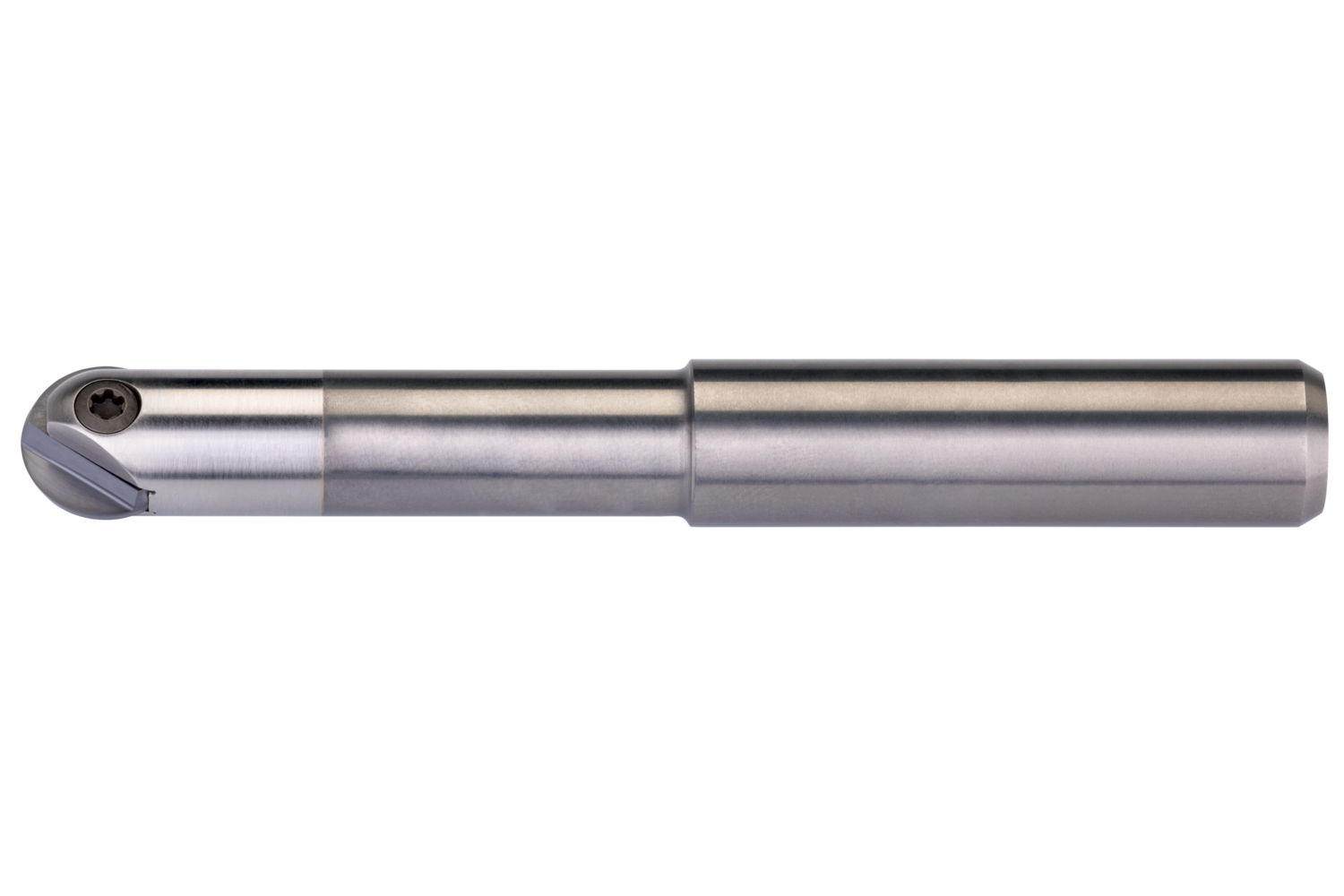 Copy end mill which utilises 1 of PPH 20, PPHE 20, PPHT 20 or PPHF 20 single-sided insert, cutting diameter 20mm with 20mm carbide parallel shank according to DIN 1835A, 141mm overall length for copy milling with a maximum depth of cut of 0.3-4.0mm