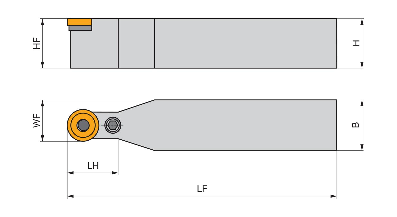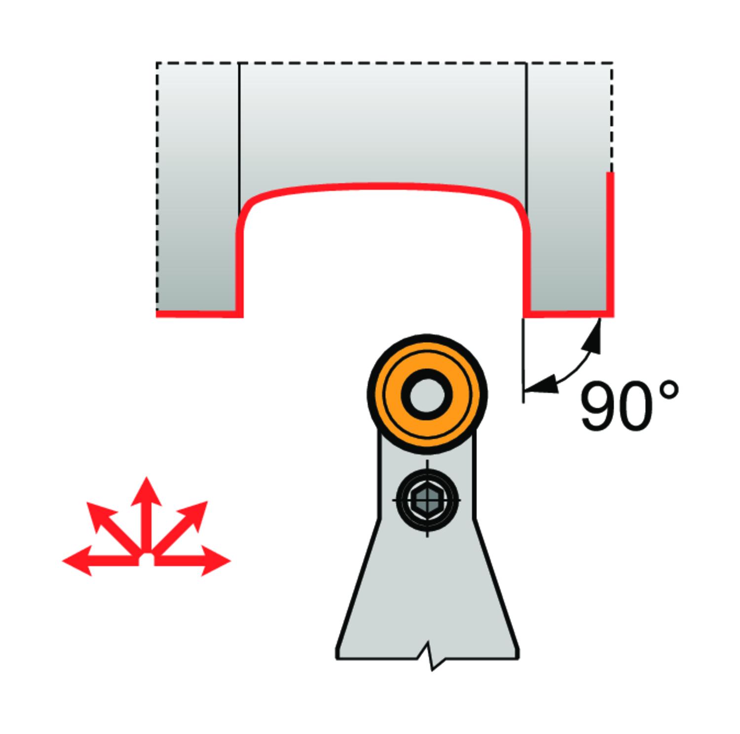 Lever lock turning tool for holding a round positive insert with a diameter of 32mm, 9.52mm thick (ISO designation RCMX 3209MO ), neutral hand side and end cutting with straight shank, 50mm tool height x 50mm width x 400mm long for taper turning, single and multi-directional copy turning and longitudinal turning without shoulder