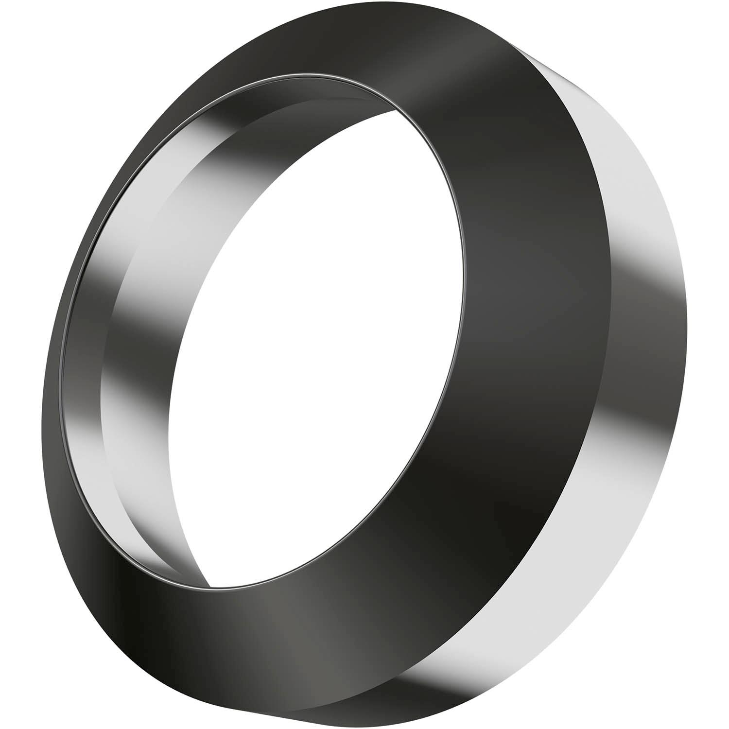 Scarfing ring with an outside diameter of 50mm, an inside diameter of 35mm, 15mm thick and a working radius of 39.5mm for tube diameters from 125 to 140mm, S45 uncoated WC-(Ti, Ta, Nb)C-Co carbide within ISO-grade ranges P30-P50 and M30-M40 for deburring the inside of steel and stainless-steel tubes and pipes