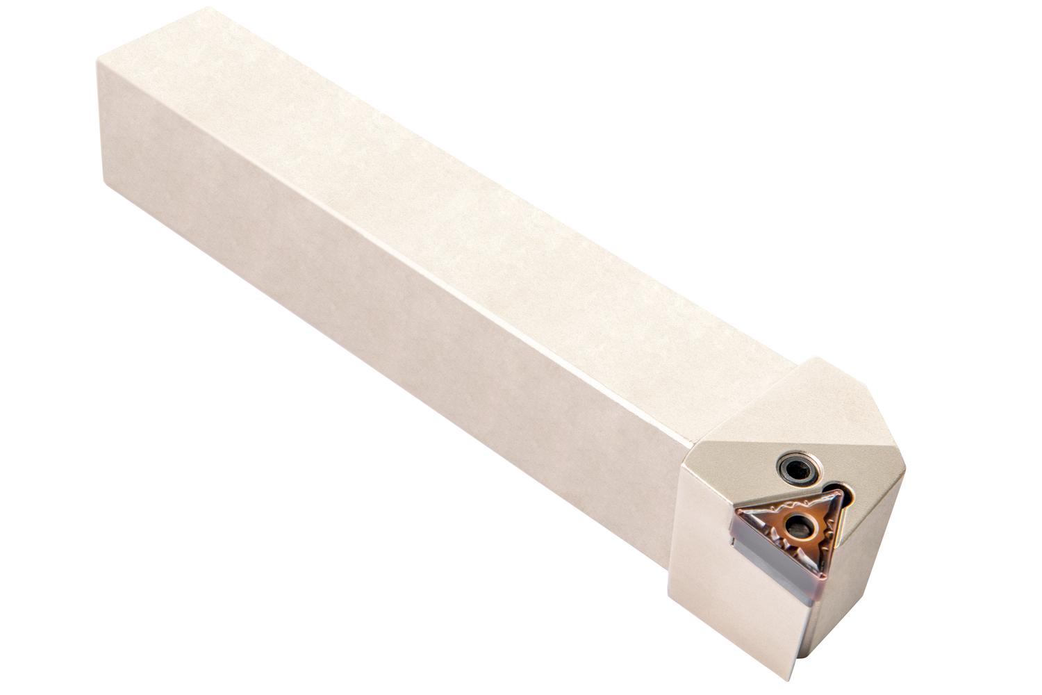 Lever lock turning tool for holding a triangular negative insert with an inscribed circle diameter of 12.7mm, 4.76mm thick (ISO designation TN.. 2204.. ), left hand 90° side cutting with off-set shank, 32mm tool height x 32mm width x 170mm long for taper turning and longitudinal turning without shoulder