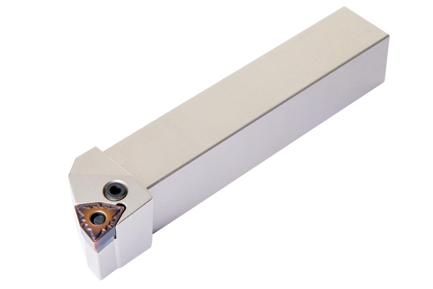 Lever lock turning tool for holding a 80° trigon negative insert with an inscribed circle diameter of 12.7mm, 4.76mm thick (ISO designation WN.. 0804.. ), right hand 95° side and end cutting with off-set shank, 20mm tool height x 20mm width x 125mm long for taper turning, face turning with and without shoulder and longitudinal turning with and without shoulder