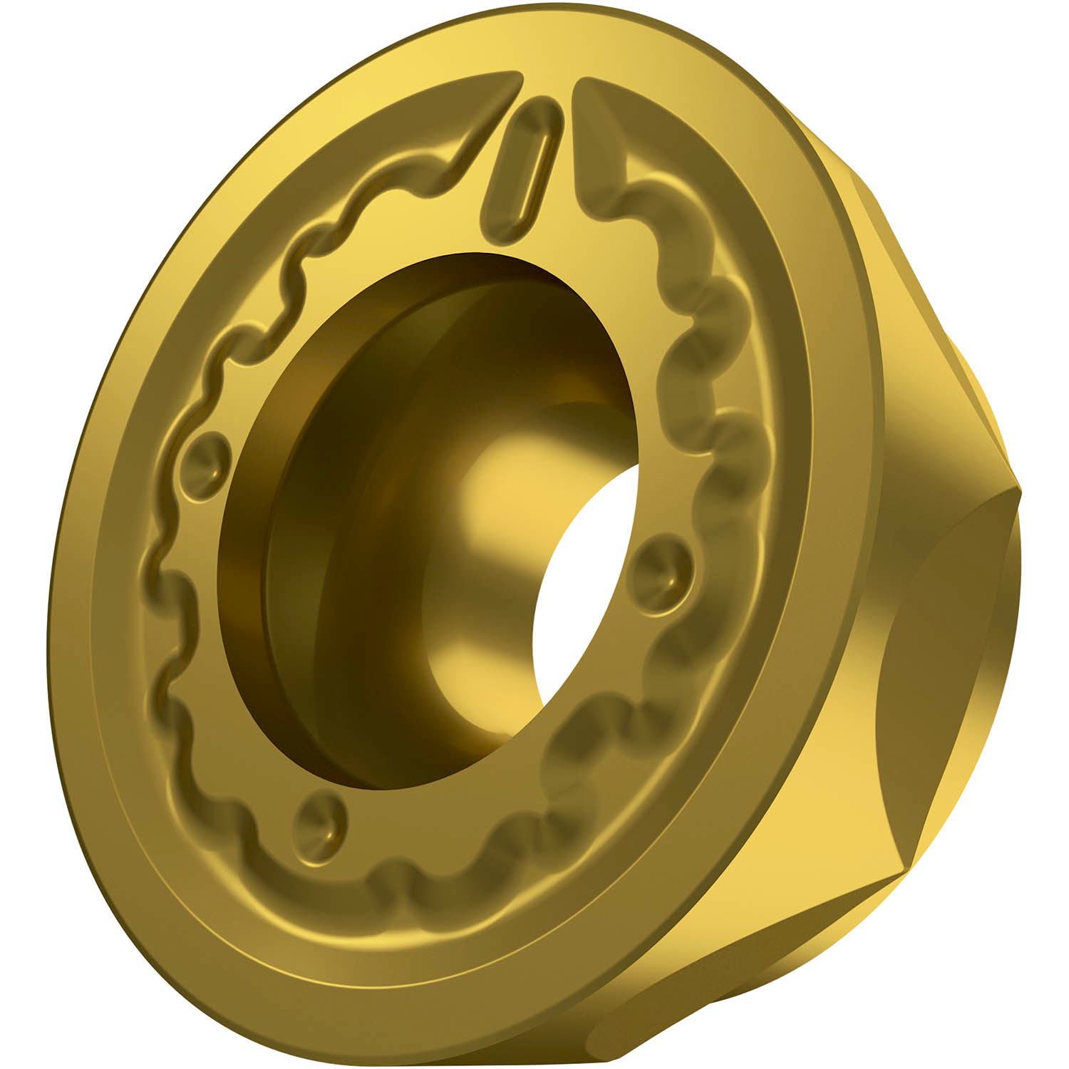 Single-sided milling insert RCMT 1606 with chip-breakers, round for a maximum depth of cut of 8.0mm, with an indexing accuracy according to ISO-tolerance class-M and R geometry with rounded cutting edges and facet, M8330 PVD coated fine grained WC-Co carbide within ISO-grade ranges P20 -P40 and K20 -K40 for machining of steel and cast-iron with copy face mills SRC16