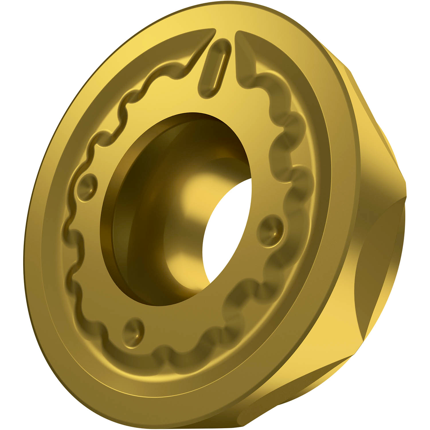 Single-sided milling insert RCMT 2006 with chip-breakers, round for a maximum depth of cut of 10.0mm, with an indexing accuracy according to ISO-tolerance class-M and R geometry with rounded cutting edges and facet, M8330 PVD coated fine grained WC-Co carbide within ISO-grade ranges P20 -P40 and K20 -K40 for machining of steel and cast-iron with copy face mills SRC20