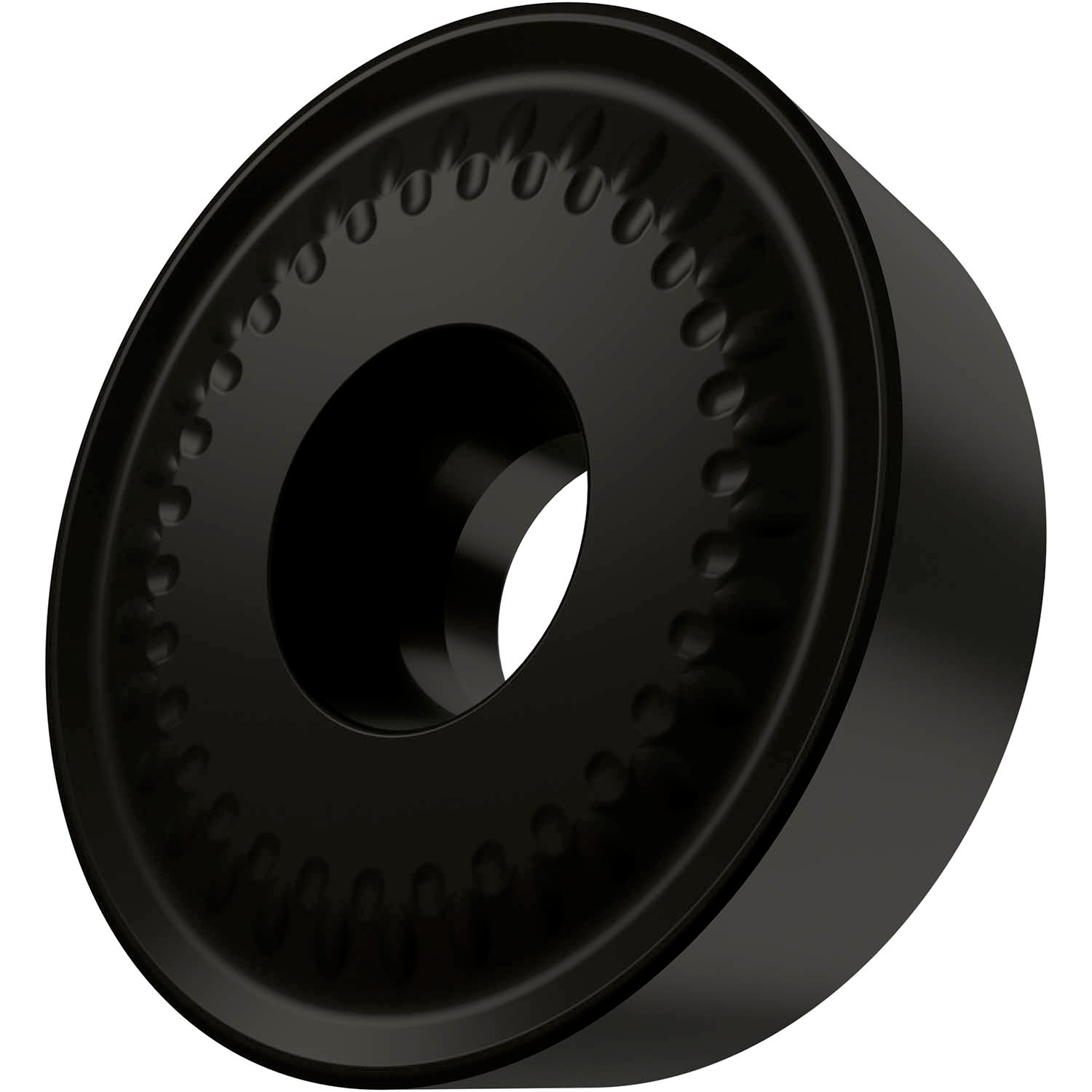 Special design positive turning insert, round with 7° clearance, a diameter of 32mm, 9.52mm thick, indexing accuracy according to ISO-tolerance class-M, chip-breaker RR2, in grade T9315, a MT-CVD coated functionally graded WC-Co carbide within ISO range P05 -P25, for heavy to medium machining of steels