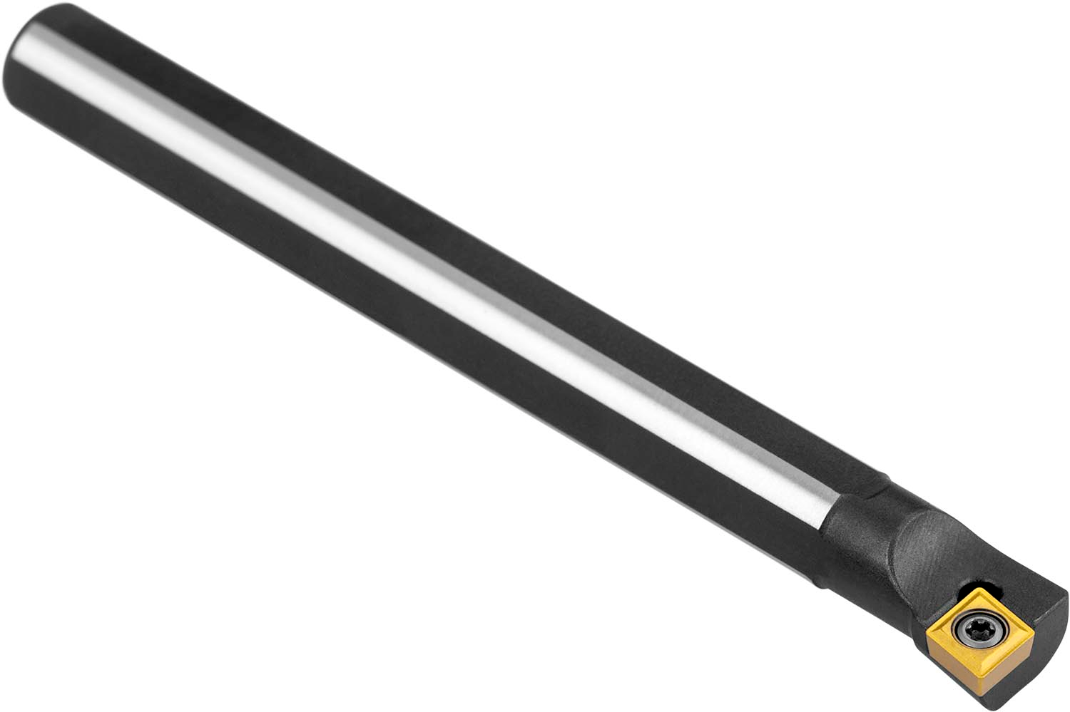 Screw clamp boring bar for holding a 80° rhombus positive insert with an inscribed circle diameter of 6.35mm, 2.38mm thick (ISO designation CC.. 0602.. ), left hand 90° end cutting with off-set shank, steel without coolant hole, 12mm diameter x 125mm long for taper boring and longitudinal boring without shoulder