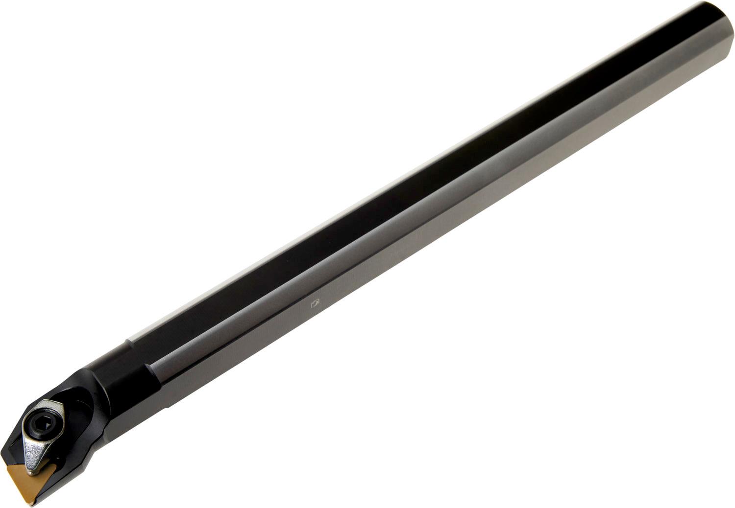 Top clamp boring bar for holding a triangular positive insert with an inscribed circle diameter of 6.35mm, 3.18mm thick (ISO designation TP.. 1103… ), right hand 90° end cutting with off-set shank, steel without coolant hole, 16mm diameter x 150mm long for taper boring and longitudinal boring with and without shoulder