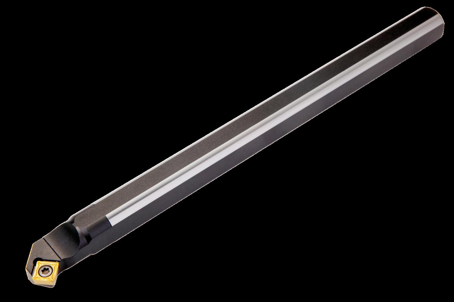 Screw clamp boring bar for holding a square positive insert with an inscribed circle diameter of 9.525mm, 3.97mm thick (ISO designation SC.. 09T3.. ), right hand 45° side cutting with off-set shank, steel without coolant hole, 20mm diameter x 250mm long for internal chamfering, taper boring, single and multi-directional copy boring and back chamfering