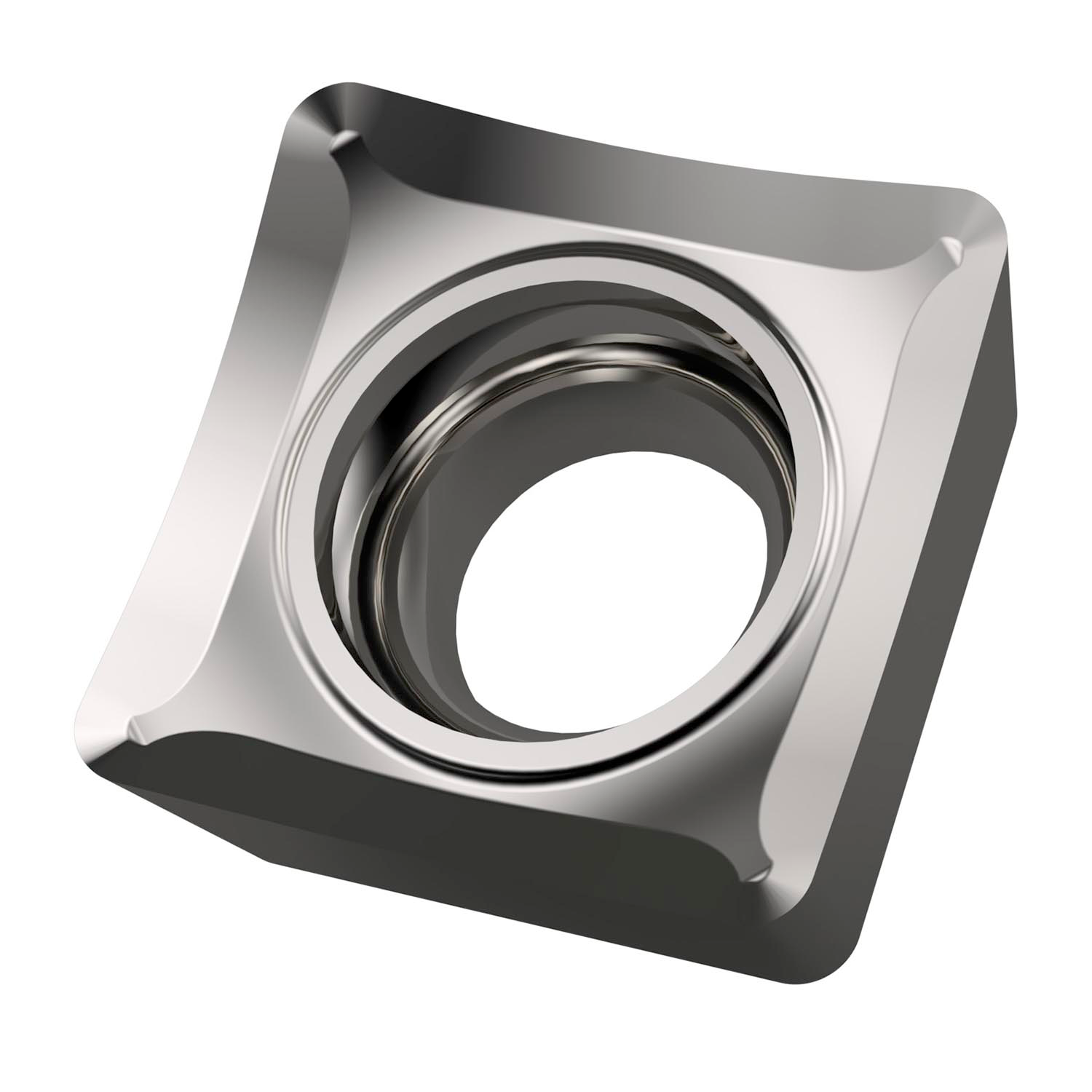 Single-sided positive turning insert, square with 7° clearance, inscribed circle diameter of 9.525mm, 3.97mm thick, 0.4mm nose radius, indexing accuracy according to ISO-tolerance class-G, chip-breaker SF3 with rounded cutting edges, in grade H07, an uncoated WC-Co carbide within ISO ranges N10 -N30 and S01 -S20, for fine to medium machining of non-ferrous metals and super-alloys