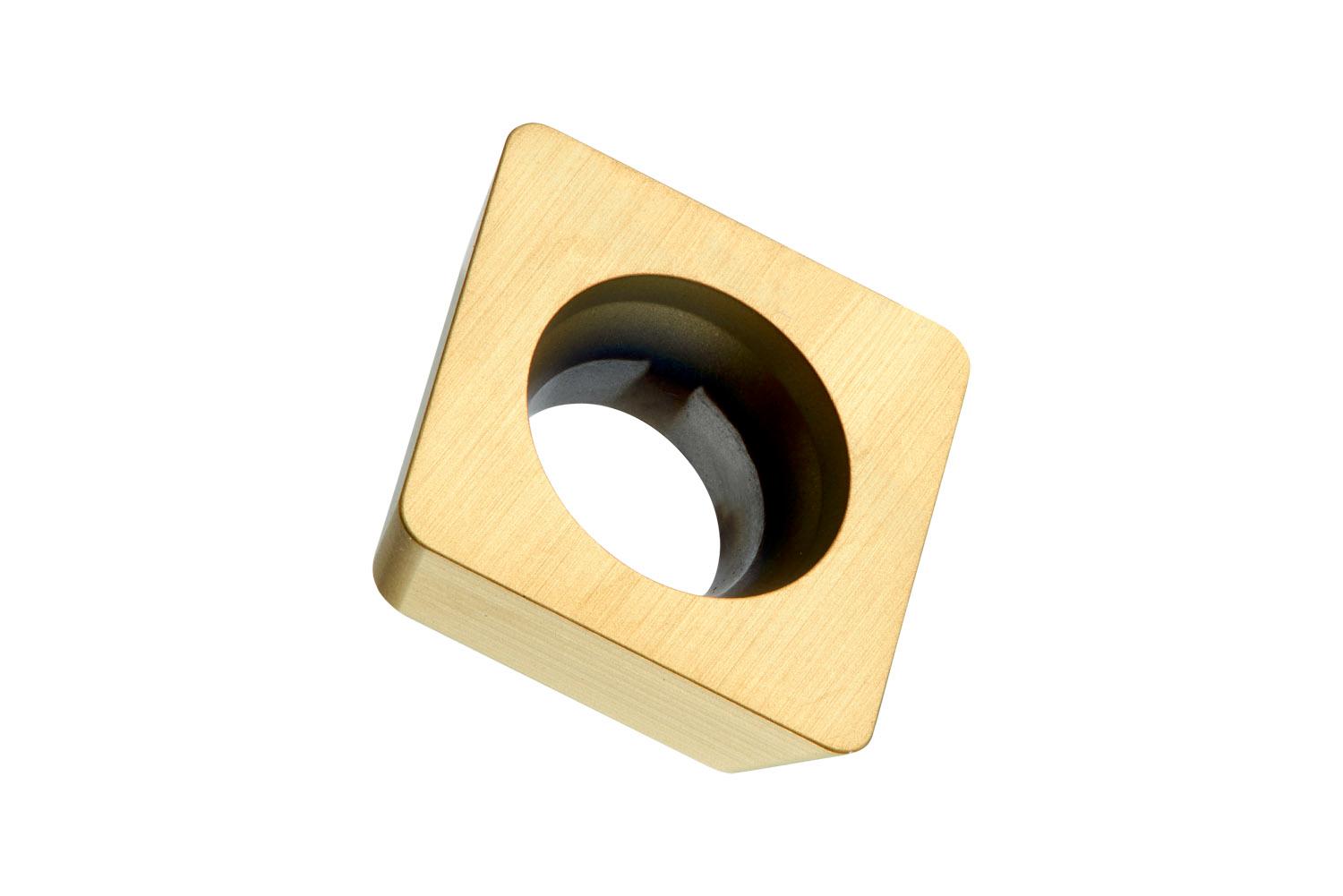 Single-sided milling insert SDEW 0903 with a plane rake surface, square for a maximum depth of cut of 4.5mm, with 0.8mm corner radius, an indexing accuracy according to ISO-tolerance class-E with rounded cutting edges and facet, M8330 PVD coated fine grained WC-Co carbide within ISO-grade range K20 -K40 for machining of cast-iron with chamfer mills SSD09