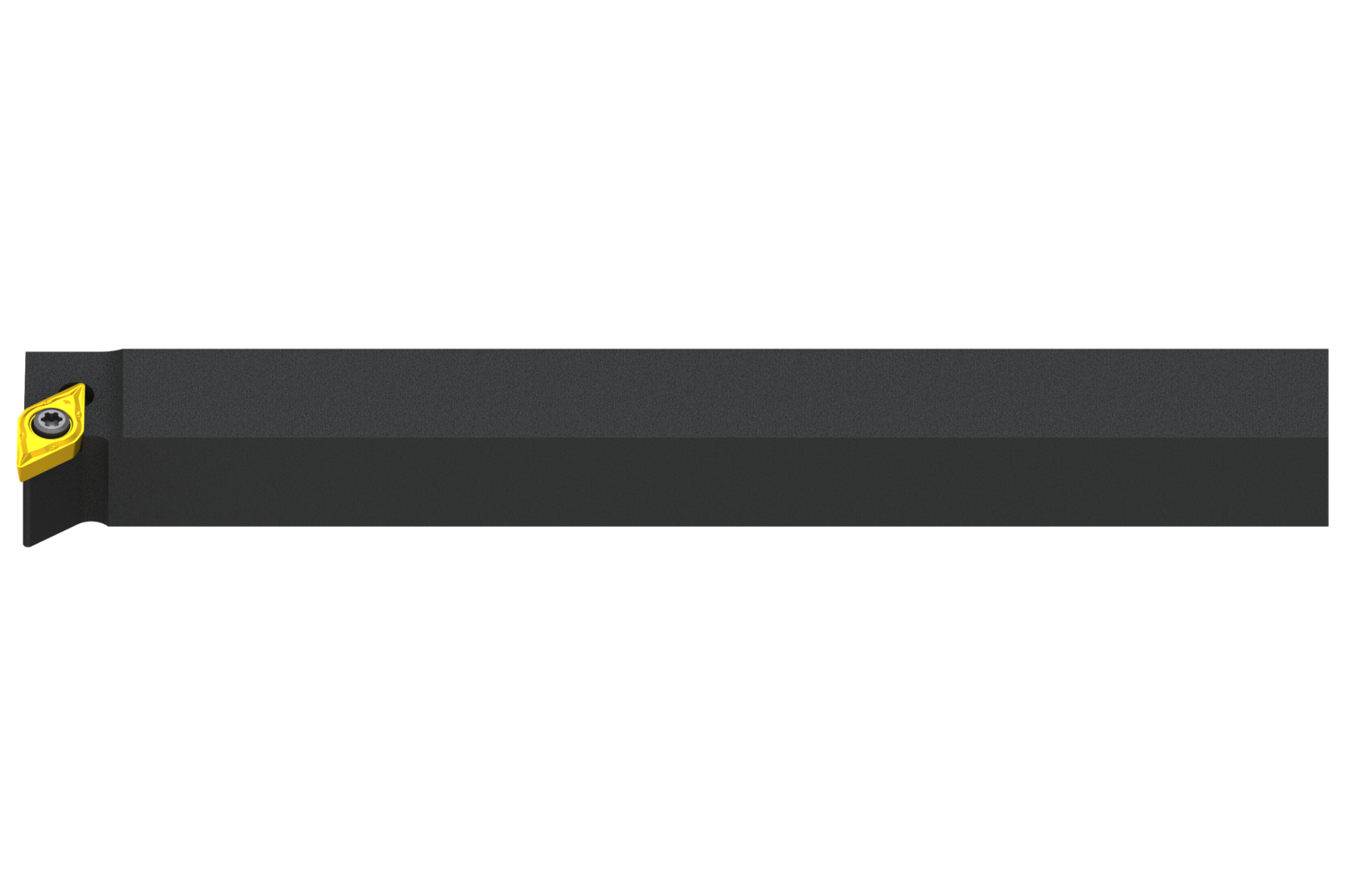 Screw clamp turning tool also compatible with sliding head machines for holding a 55° rhombus positive insert with an inscribed circle diameter of 6.35mm, 2.38mm thick (ISO designation DC.. 0702.. ), right hand 90° end cutting with off-set shank, 12mm tool height x 12mm width x 125mm long for taper turning and longitudinal turning with and without shoulder
