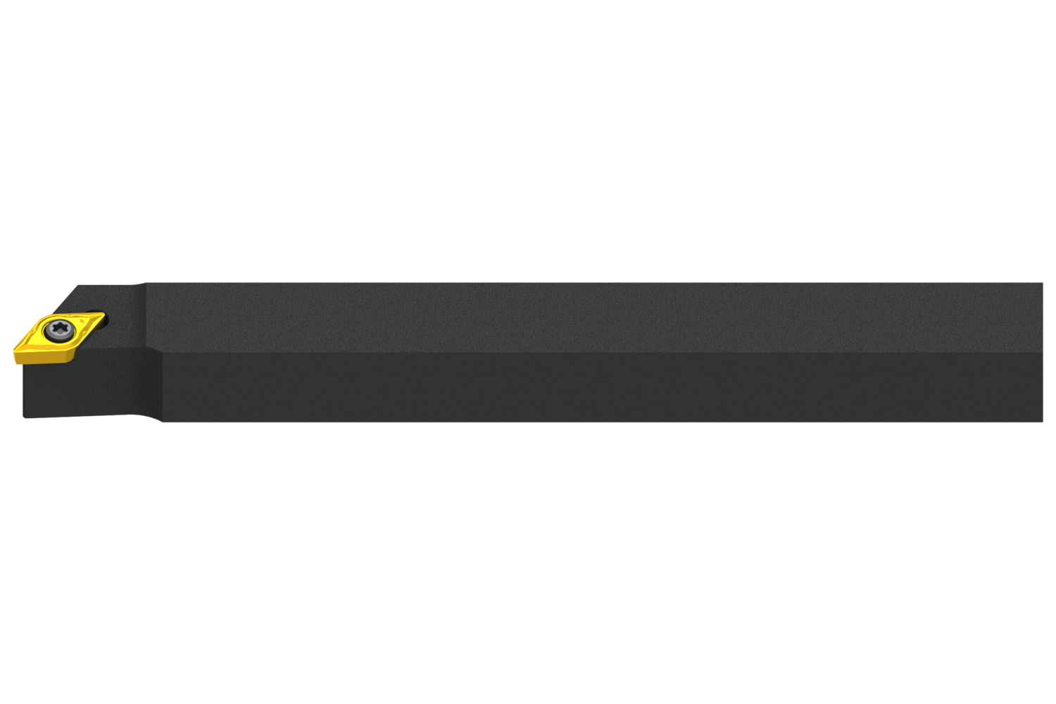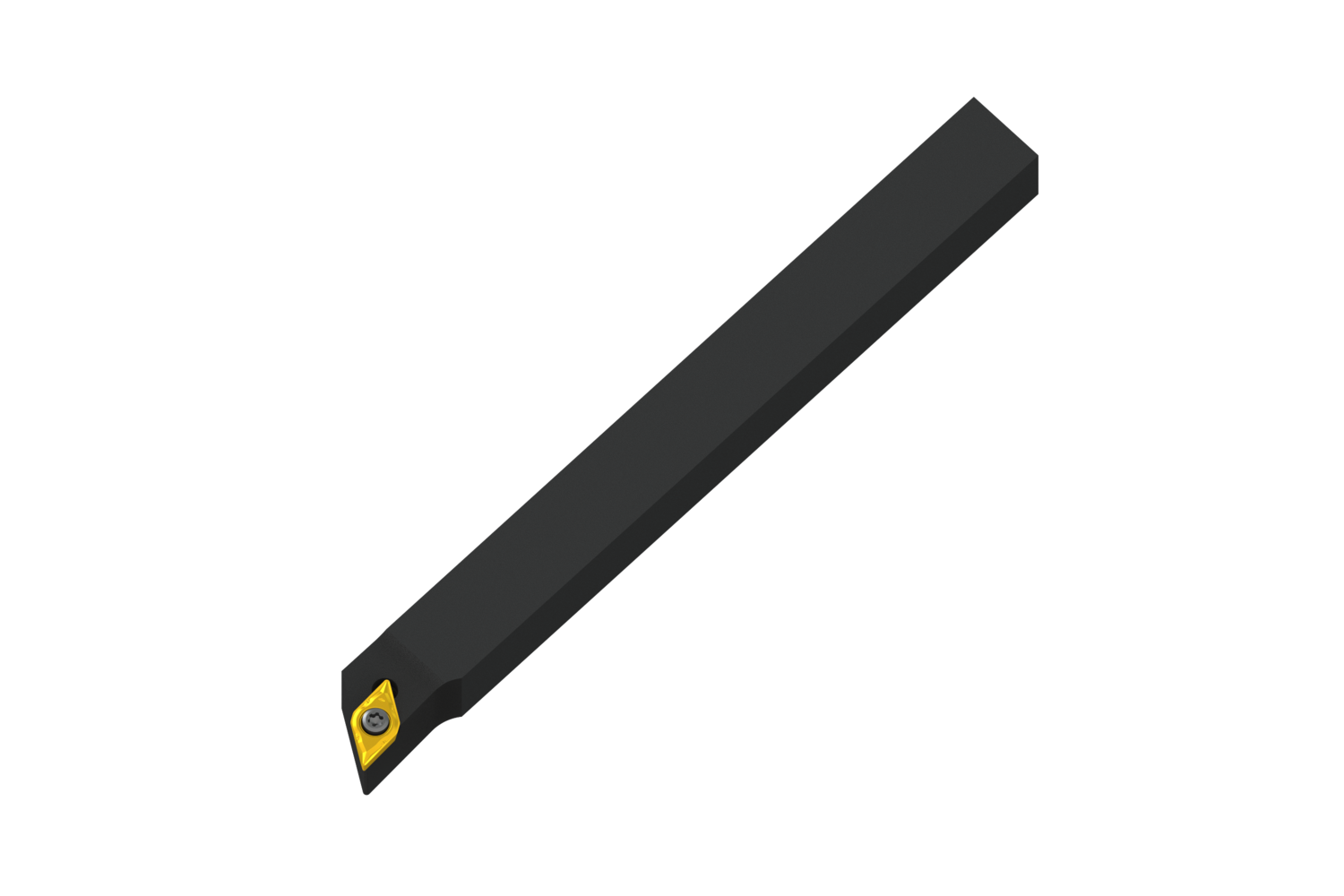 Screw clamp turning tool also compatible with sliding head machines for holding a 55° rhombus positive insert with an inscribed circle diameter of 6.35mm, 2.38mm thick (ISO designation DC.. 0702.. ), right hand 93° side cutting with off-set shank, 12mm tool height x 12mm width x 125mm long for chamfering, taper turning, single and multi-directional copy turning and longitudinal turning with and without shoulder