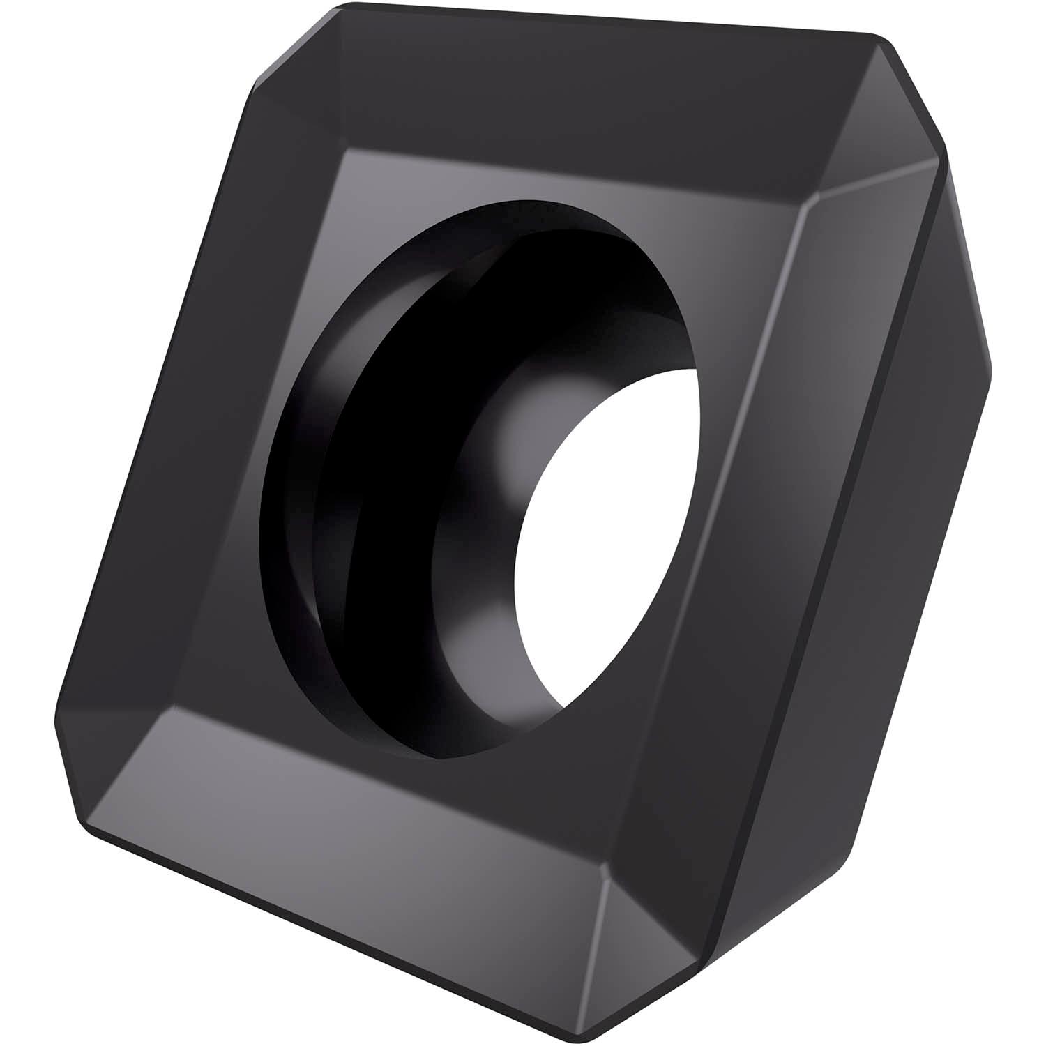 Single-sided milling insert SEET 1204 with chip-breakers, square for a maximum depth of cut of 6.5mm, with an indexing accuracy according to ISO-tolerance class-E with rounded cutting edges and facet, 8215 PVD coated fine grained WC-Co carbide within ISO-grade ranges P10 -P20 and K10 -K25 for machining of steel and cast-iron