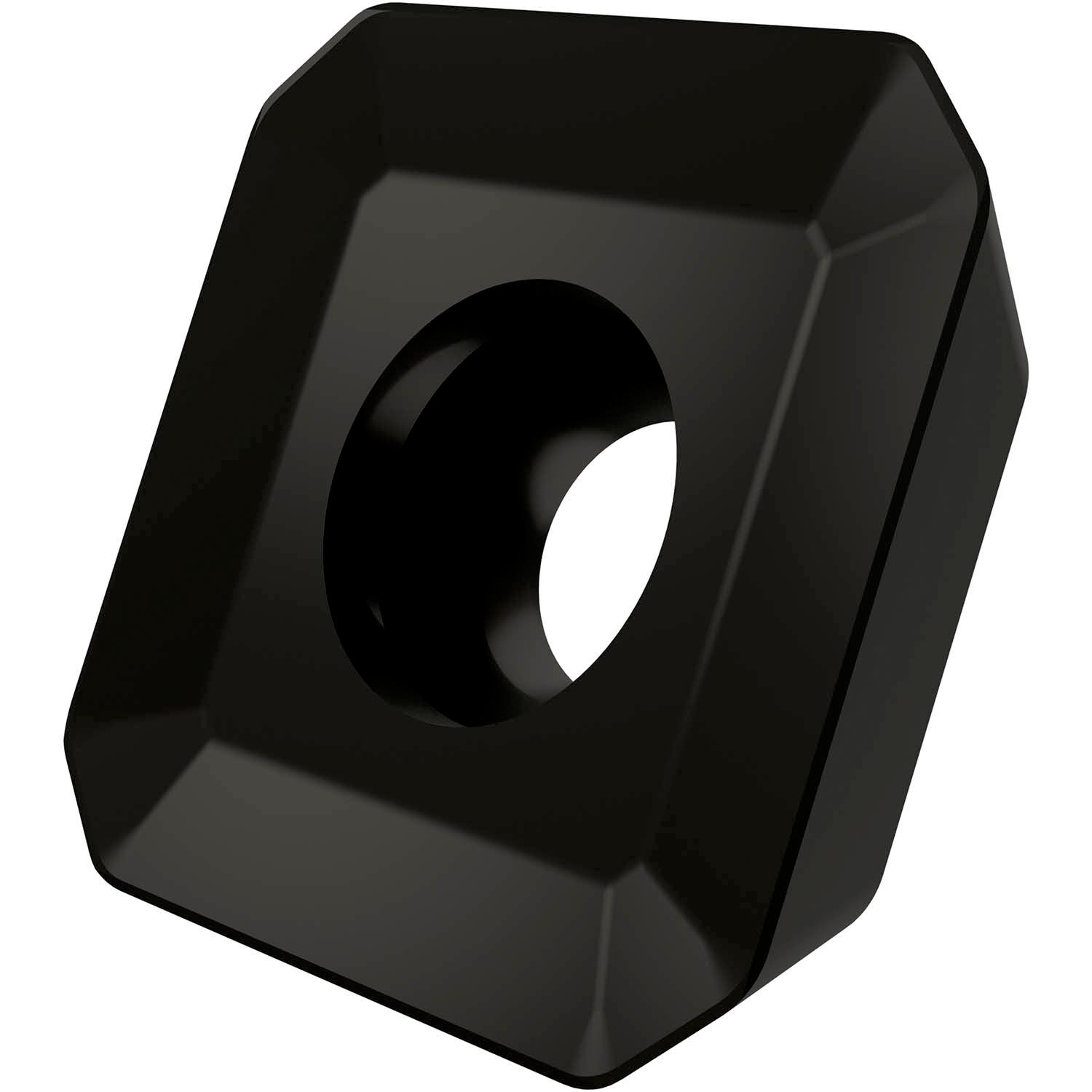 Single-sided milling insert SEET 12T3 with chip-breakers, square for a maximum depth of cut of 6.5mm, with an indexing accuracy according to ISO-tolerance class-E and PM geometry with rounded cutting edges and double facet, M9325 MT-CVD coated WC-Co carbide within ISO-grade ranges P10 -P30 and K10 -K30 for machining of steel and cast-iron