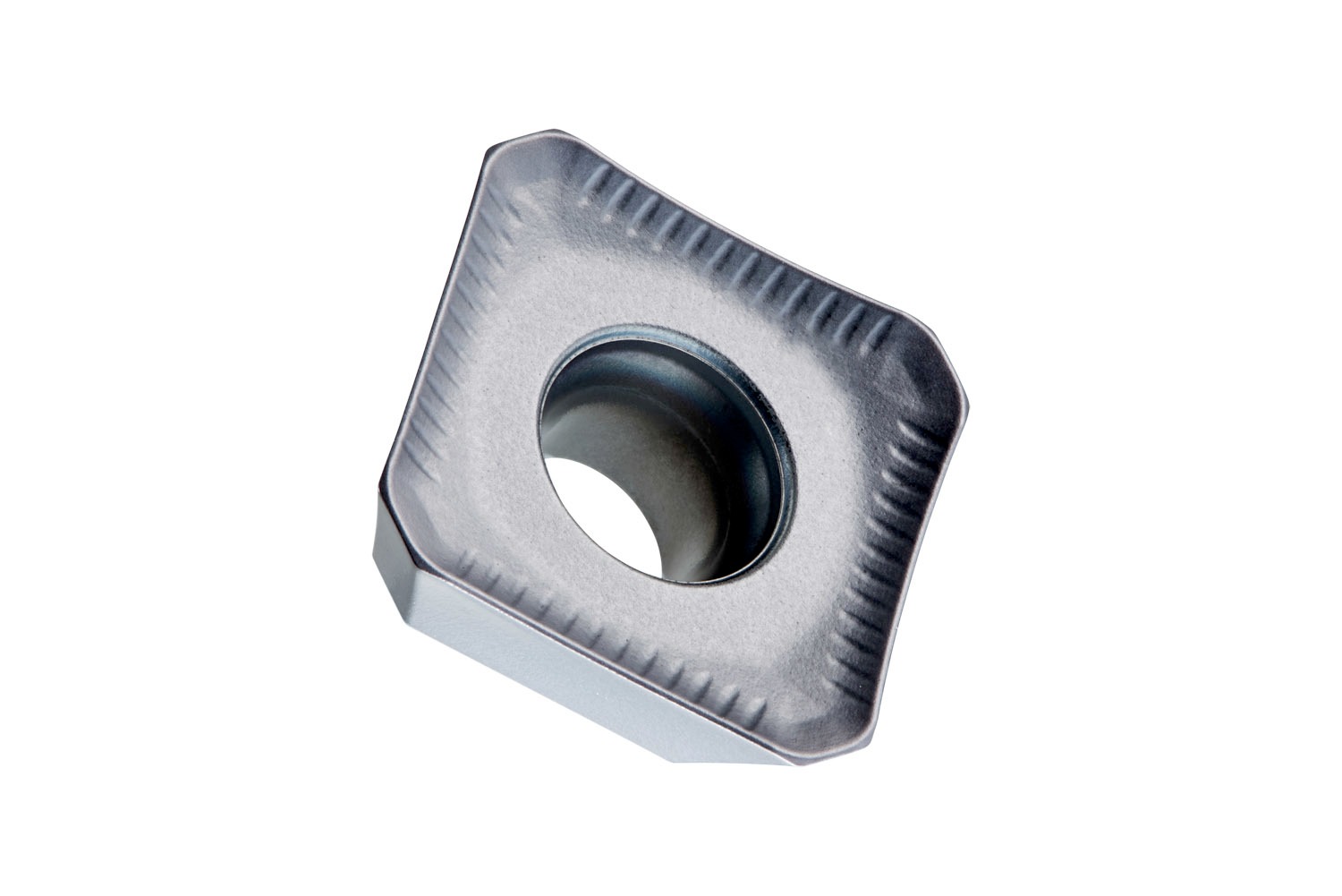 Single-sided milling insert SEMT 09T3 with chip-breakers, square for a maximum depth of cut of 4.5mm, with an indexing accuracy according to ISO-tolerance class-M with rounded cutting edges and facet, 8215 PVD coated fine grained WC-Co carbide within ISO-grade ranges P10 -P20 and K10 -K25 for machining of steel and cast-iron with face mills SSE09