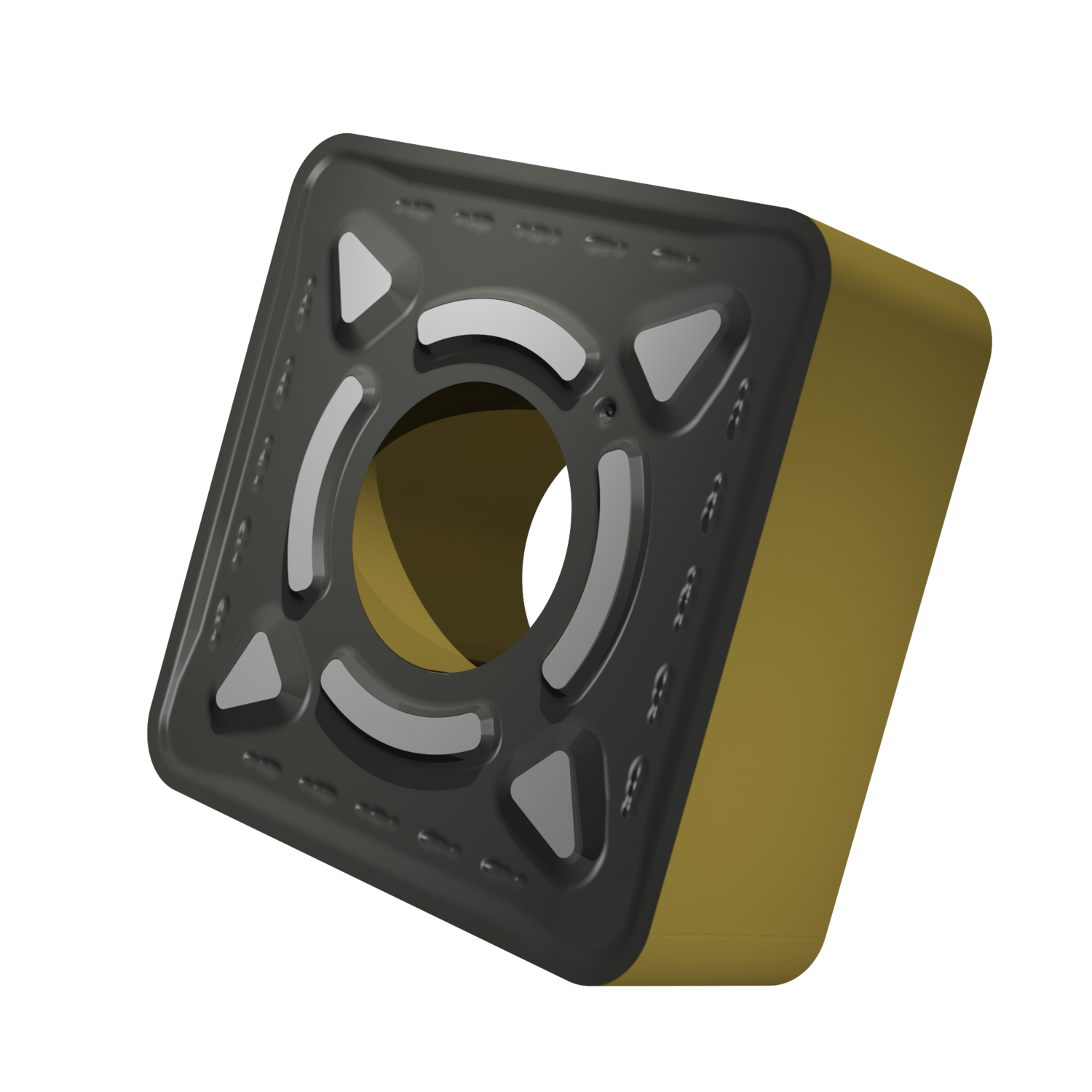Double-sided negative turning insert, square with inscribed circle diameter of 15.875mm, 6.35mm thick, 1.6mm nose radius, indexing accuracy according to ISO-tolerance class-M, chip-breaker RM with rounded cutting edges, in grade T9415, a MT-CVD coated functionally graded WC-Co carbide within ISO range P05 -P30, for medium to heavy machining of steels