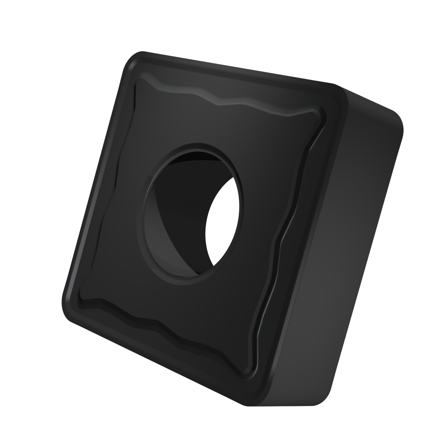 Double-sided negative turning insert, square with inscribed circle diameter of 19.05mm, 6.35mm thick, 1.6mm nose radius, indexing accuracy according to ISO-tolerance class-M, chip-breaker KR with rounded cutting edges, in grade T5315, a MT-CVD coated WC-Co carbide within ISO range K10 -K25, for medium to heavy machining of cast-irons