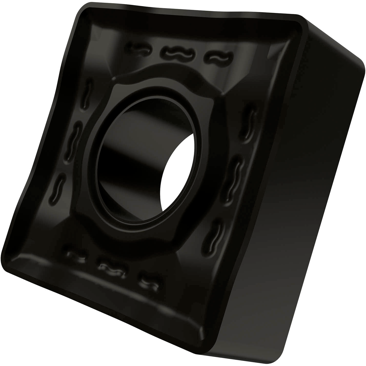 Double-sided negative turning insert, square with inscribed circle diameter of 19.05mm, 6.35mm thick, 1.2mm nose radius, indexing accuracy according to ISO-tolerance class-M, chip-breaker NR2 with rounded cutting edges, in grade T9325, a MT-CVD coated functionally graded WC-Co carbide within ISO ranges P15 -P35 and M10 -M30, for medium to extra heavy machining of steels and stainless-steels