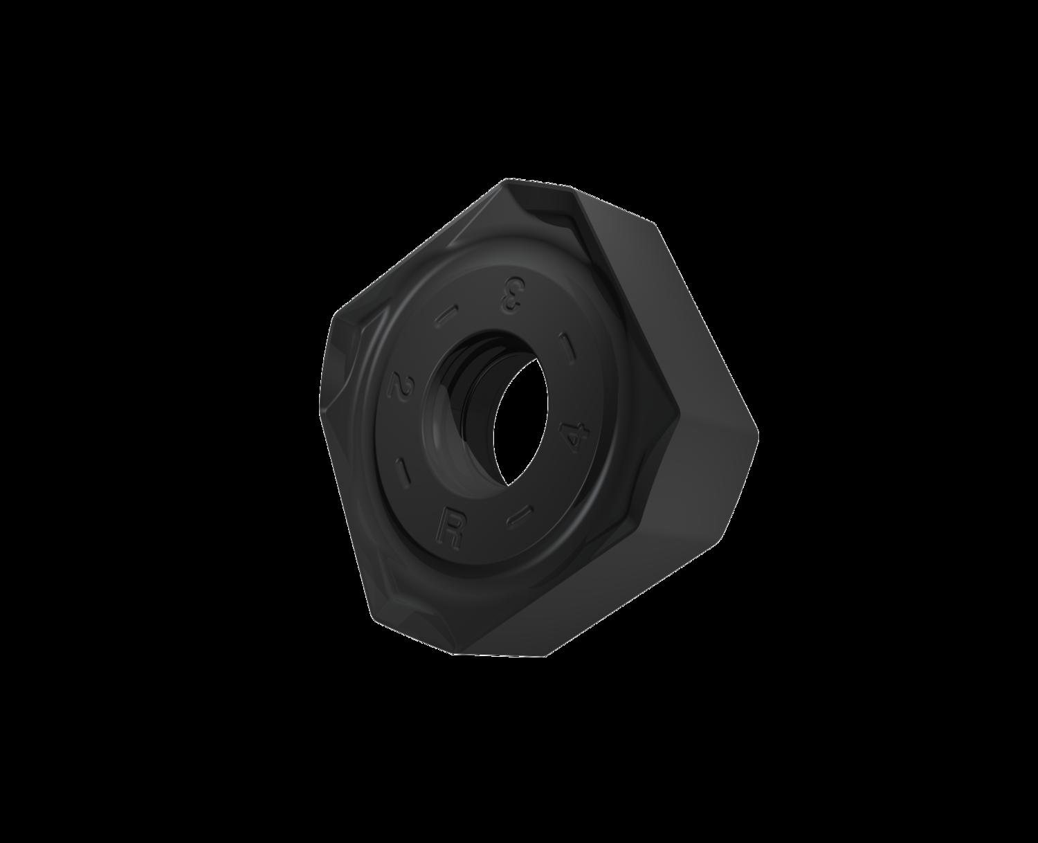 Double-sided milling insert SNMX 1705, square for a maximum depth of cut of 7mm, with 0.8mm corner radius, an indexing accuracy according to ISO-tolerance class-M and R geometry with rounded cutting edges and facet, M9325 MT-CVD coated WC-Co carbide within ISO-grade ranges P10 -P30 and K10 -K30 for machining of steel and cast-iron with face mills SON06C
