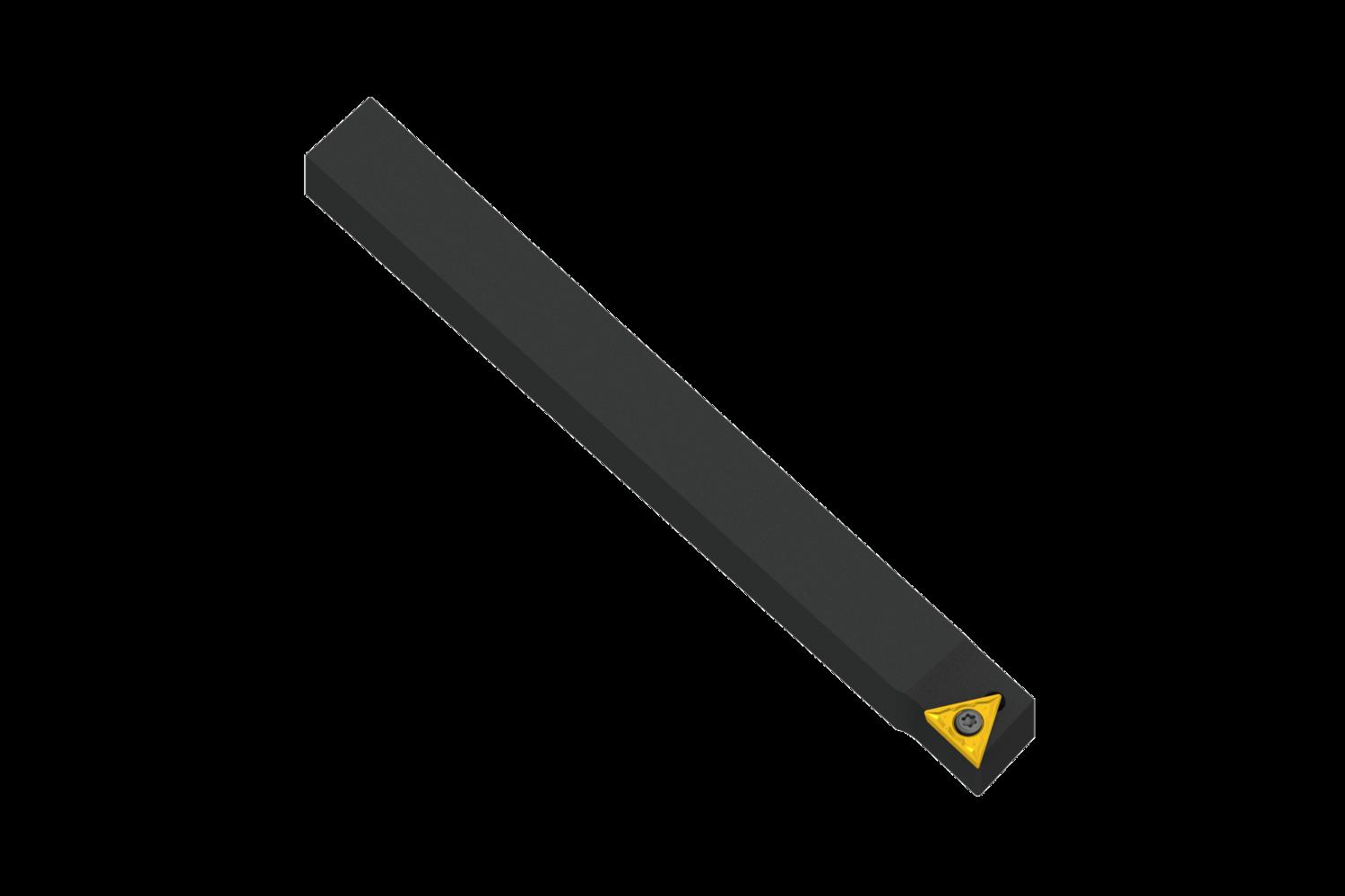 Screw clamp turning tool also compatible with sliding head machines for holding a triangular positive insert with an inscribed circle diameter of 6.35mm, 2.38mm thick (ISO designation TC.. 1102.. ), left hand 90° side cutting with straight shank, 12mm tool height x 12mm width x 125mm long for taper turning and longitudinal turning with and without shoulder