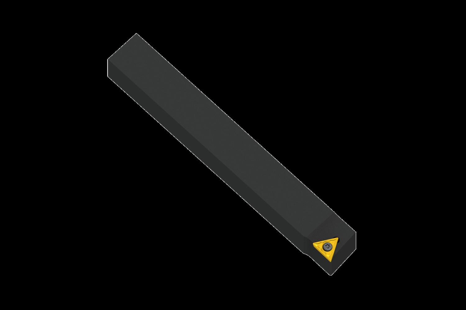 Screw clamp turning tool also compatible with sliding head machines for holding a triangular positive insert with an inscribed circle diameter of 6.35mm, 2.38mm thick (ISO designation TC.. 1102.. ), left hand 90° side cutting with straight shank, 16mm tool height x 16mm width x 125mm long for taper turning and longitudinal turning with and without shoulder