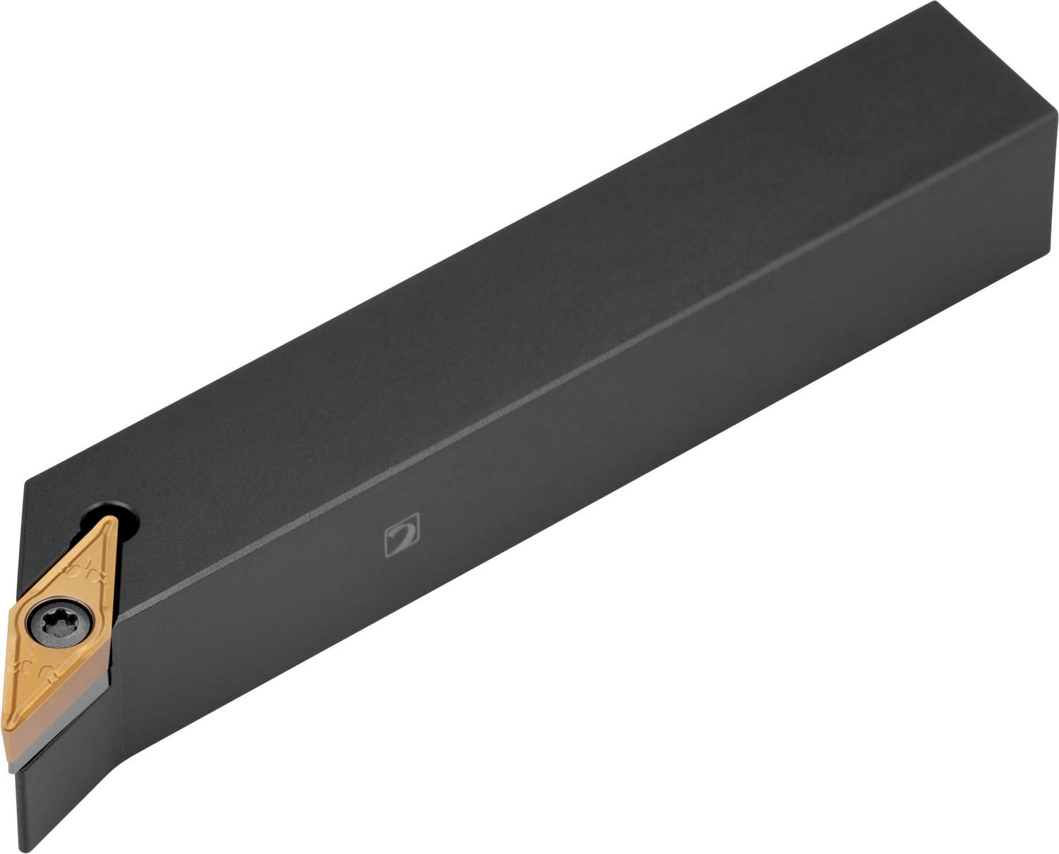 Screw clamp turning tool for holding a 35° rhombus positive insert with an inscribed circle diameter of 9.525mm, 4.76mm thick (ISO designation VB.. 1604.. or VC.. 1604.. ), right hand 107°30′ side cutting with off-set shank, 20mm tool height x 20mm width x 125mm long for taper turning, single and multi-directional copy turning and longitudinal turning with and without shoulder