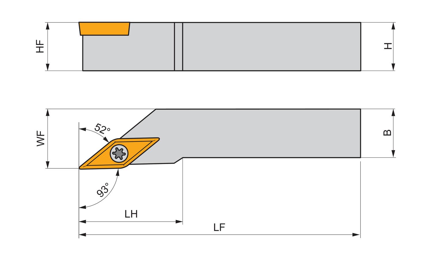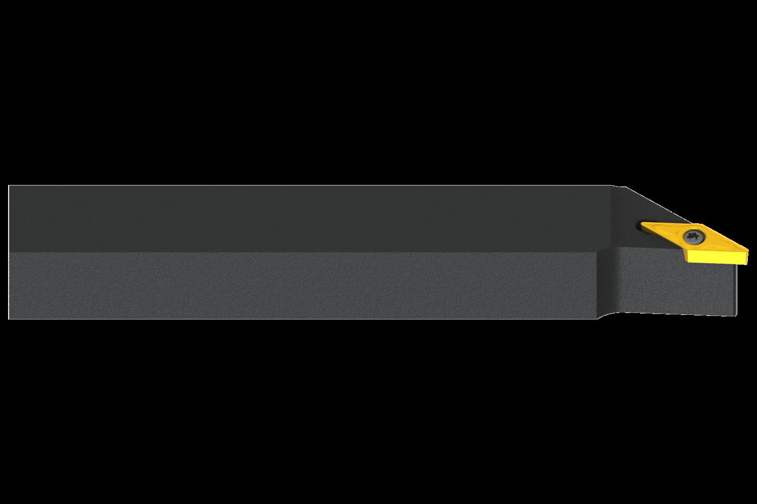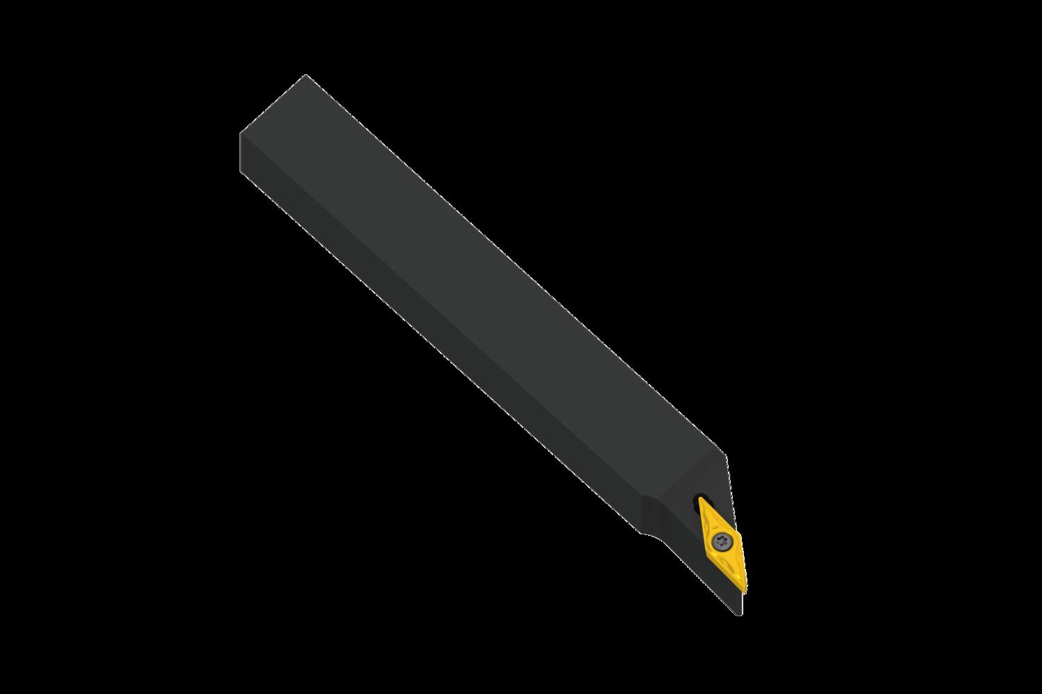 Screw clamp turning tool also compatible with sliding head machines for holding a 35° rhombus positive insert with an inscribed circle diameter of 6.35mm, 3.18mm thick (ISO designation VB.. 1103.., VC.. 1103.. ), left hand 93° side cutting with off-set shank, 16mm tool height x 16mm width x 125mm long for taper turning, single and multi-directional copy turning and longitudinal turning with and without shoulder