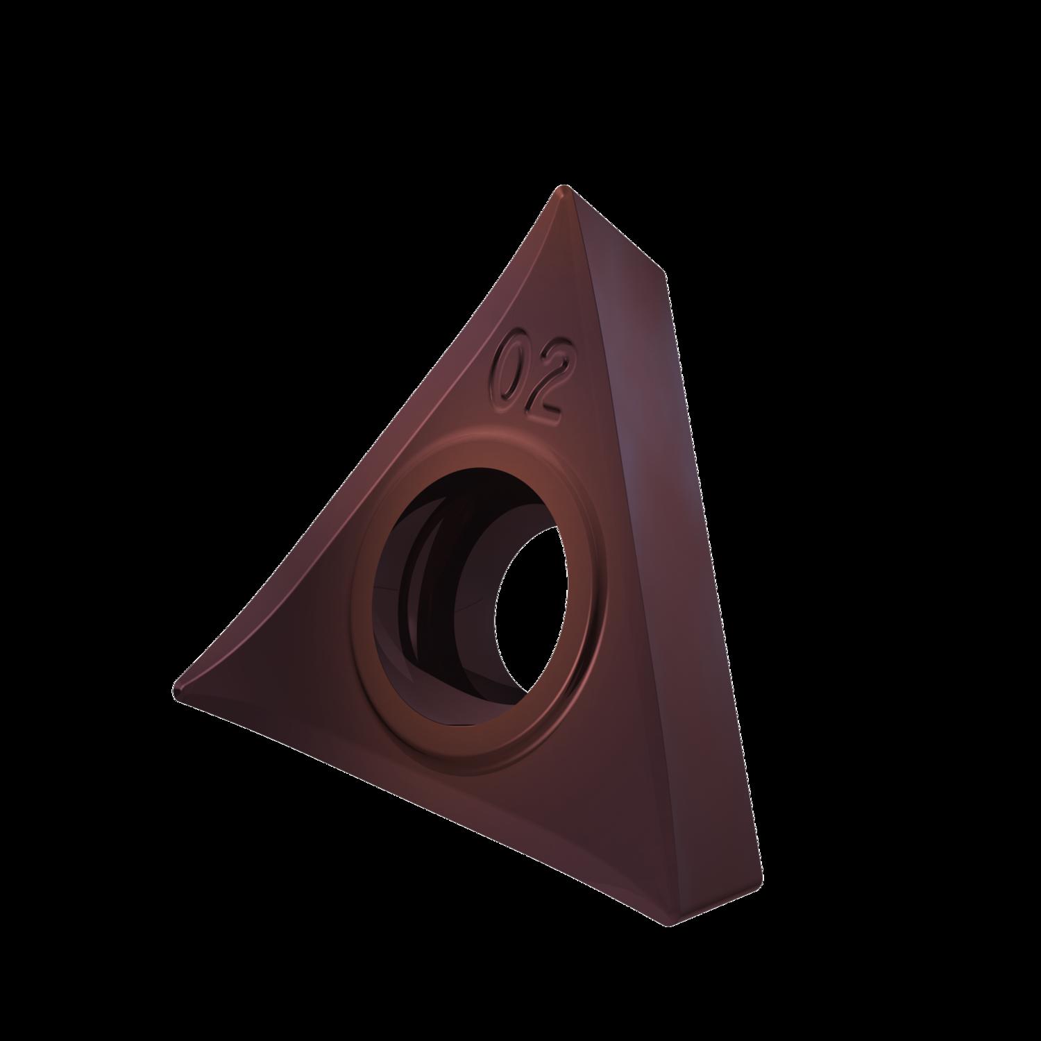 Single-sided positive turning insert, triangular with 7° clearance, inscribed circle diameter of 6.35mm, 2.38mm thick, 0.2mm nose radius, indexing accuracy according to ISO-tolerance class-G, chip-breaker SF3 with rounded cutting edges, in grade T8415