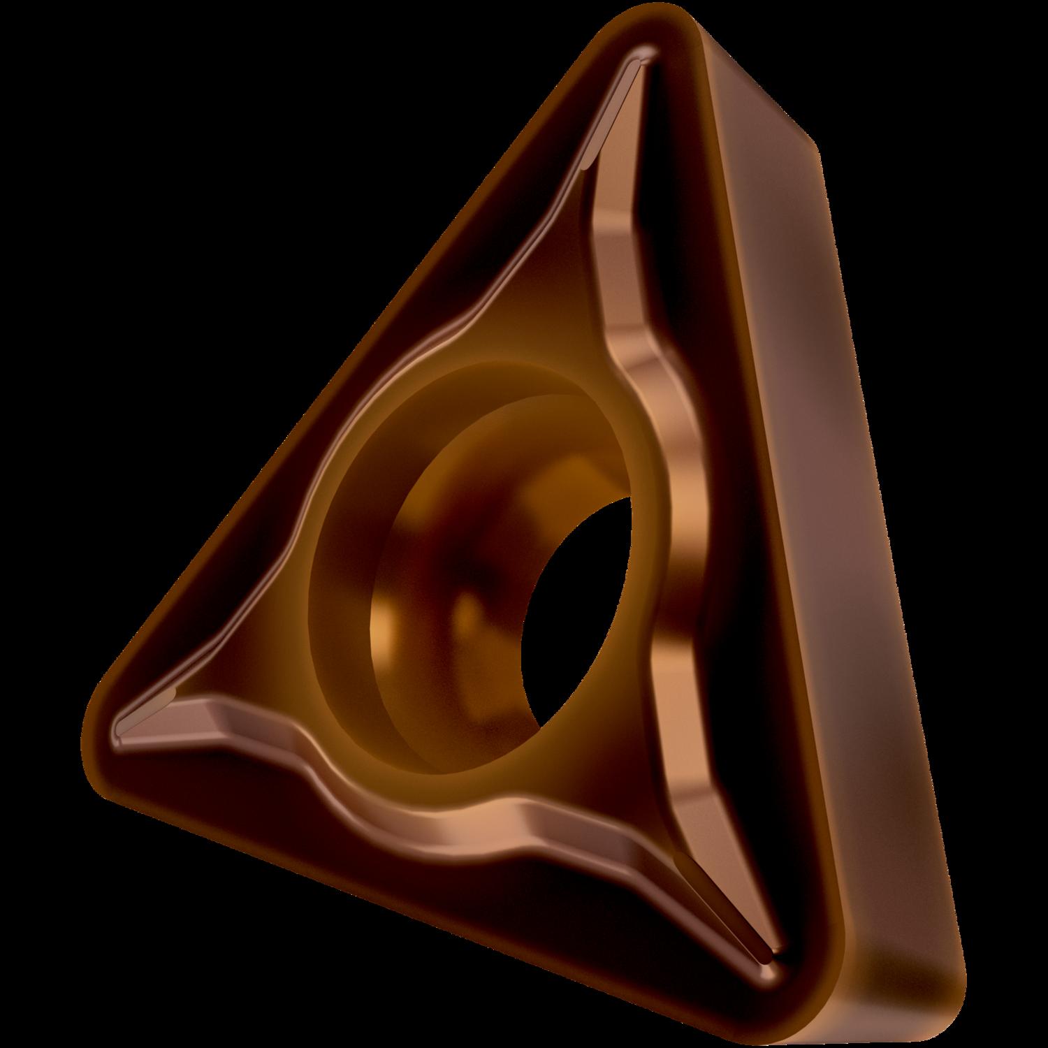 Single-sided positive turning insert, triangular with 7° clearance, inscribed circle diameter of 5.56mm, 2.38mm thick, 0.4mm nose radius, indexing accuracy according to ISO-tolerance class-M, chip-breaker FF2 with rounded cutting edges, in grade T8430, a PVD coated fine grained WC-Co carbide within ISO range P20 -P40, for fine to medium machining of steels