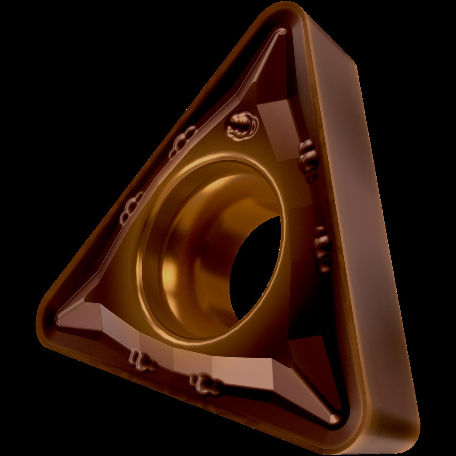 Single-sided positive turning insert, triangular with 7° clearance, inscribed circle diameter of 6.35mm, 2.38mm thick, 0.2mm nose radius, indexing accuracy according to ISO-tolerance class-M, chip-breaker FM with rounded cutting edges, in grade T8430, a PVD coated fine grained WC-Co carbide within ISO ranges P20 -P40 and M20 -M35, for fine to medium machining of steels and stainless-steels
