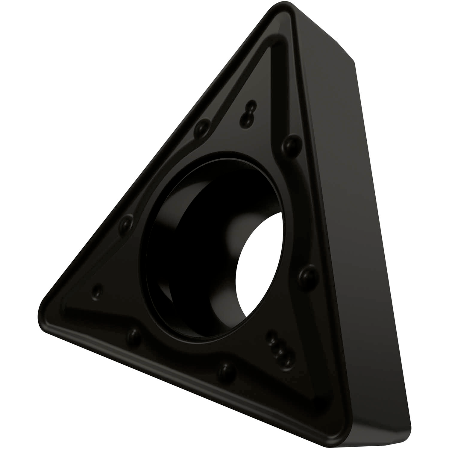Single-sided positive turning insert, triangular with 7° clearance, with an indexing accuracy according to ISO-tolerance class-M, with rounded cutting edges.