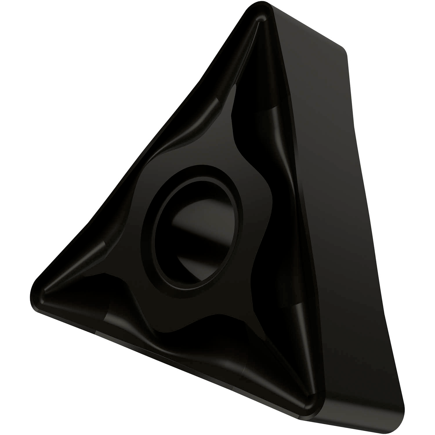 Double-sided negative turning insert, triangular with inscribed circle diameter of 9.525mm, 4.76mm thick, 0.8mm nose radius, indexing accuracy according to ISO-tolerance class-M, chip-breaker NF with rounded cutting edges, in grade T7325, a MT-CVD coated functionally graded WC-Co carbide within ISO range M10 -M25, for fine to medium machining of stainless-steels