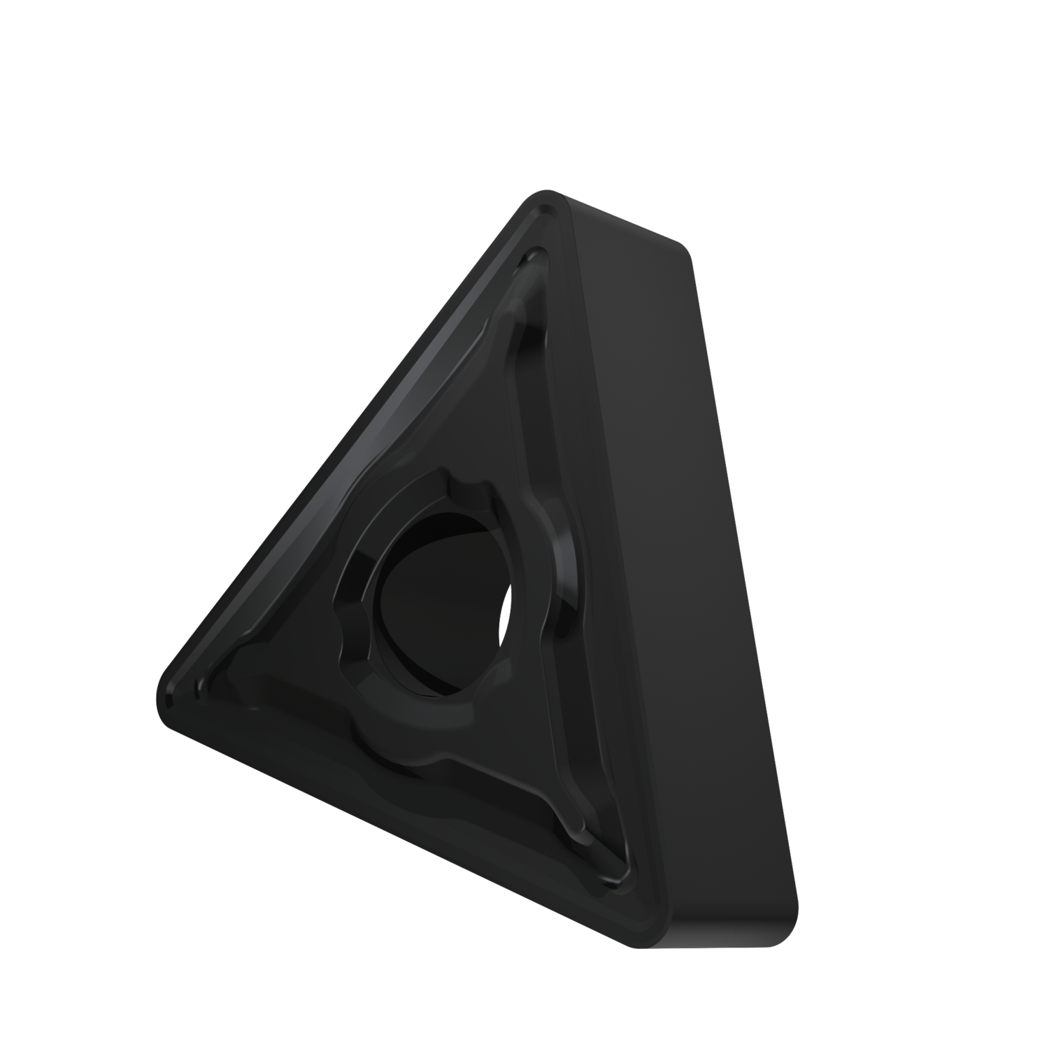 Double-sided negative turning insert, triangular with inscribed circle diameter of 9.525mm, 4.76mm thick, with an indexing accuracy according to ISO-tolerance class-M, with rounded cutting edges.