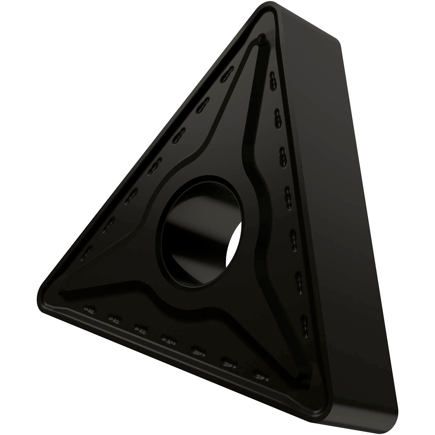 Double-sided negative turning insert, triangular with inscribed circle diameter of 9.525mm, 4.76mm thick, with an indexing accuracy according to ISO-tolerance class-M, with rounded cutting edges.