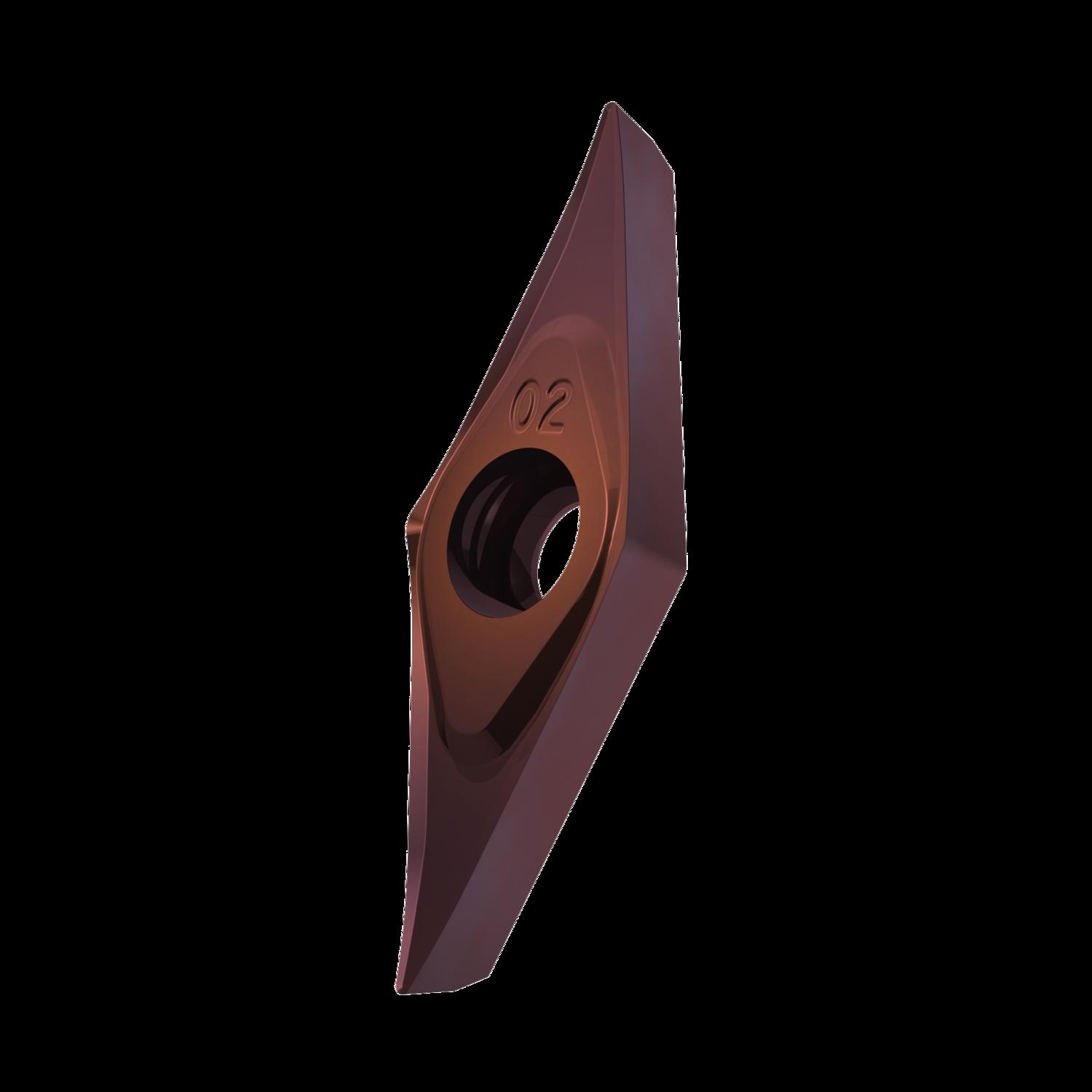 Single-sided positive turning insert, 35° rhomboid with 7° clearance, inscribed circle diameter of 6.35mm, 2.38mm thick, 0.4mm nose radius, indexing accuracy according to ISO-tolerance class-G, chip-breaker SF3 with rounded cutting edges, in grade T8415