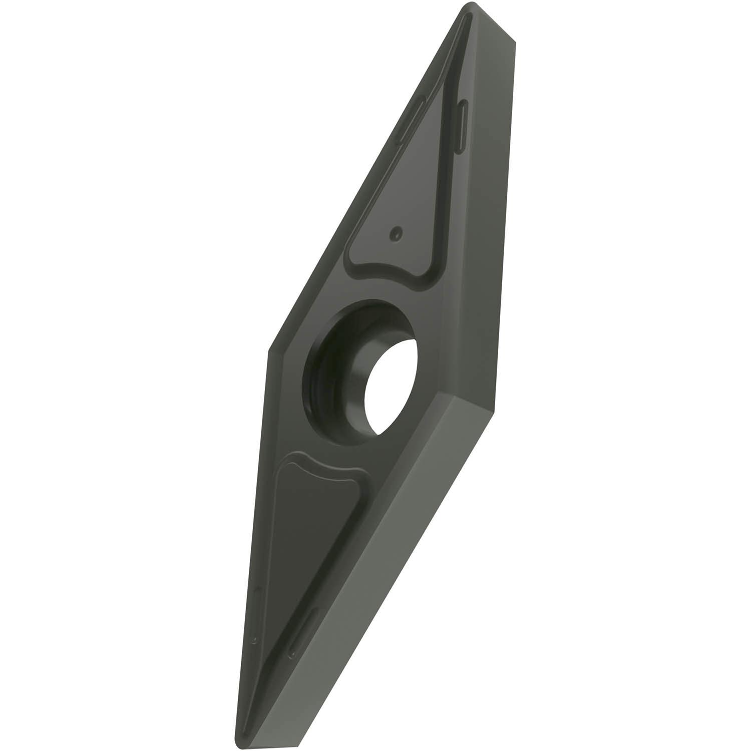 Single-sided positive turning insert, 35° rhomboid with 7° clearance, inscribed circle diameter of 7.94mm, 3.18mm thick, 0.2mm nose radius, indexing accuracy according to ISO-tolerance class-G, chip-breaker FF2 with rounded cutting edges, in grade TT010, an uncoated cermet within ISO range P01 -P10, for fine to medium machining of steels