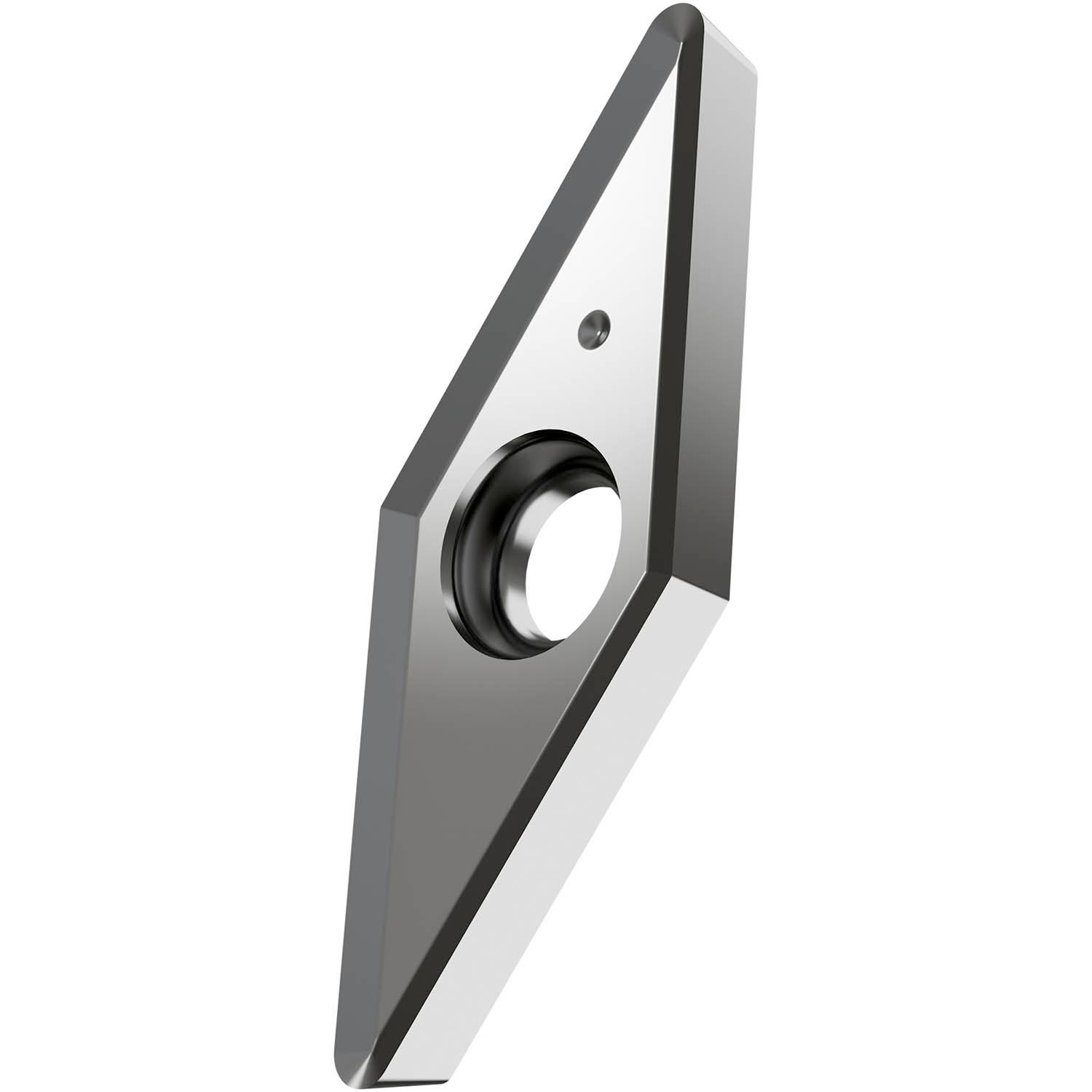 Single-sided positive turning insert, 35° rhomboid with 7° clearance, inscribed circle diameter of 7.94mm, 3.18mm thick, 0.4mm nose radius, indexing accuracy according to ISO-tolerance class-G, chip-breaker SF2 with rounded cutting edges, in grade H07, an uncoated WC-Co carbide within ISO range S01 -S20, for fine to medium machining of super-alloys