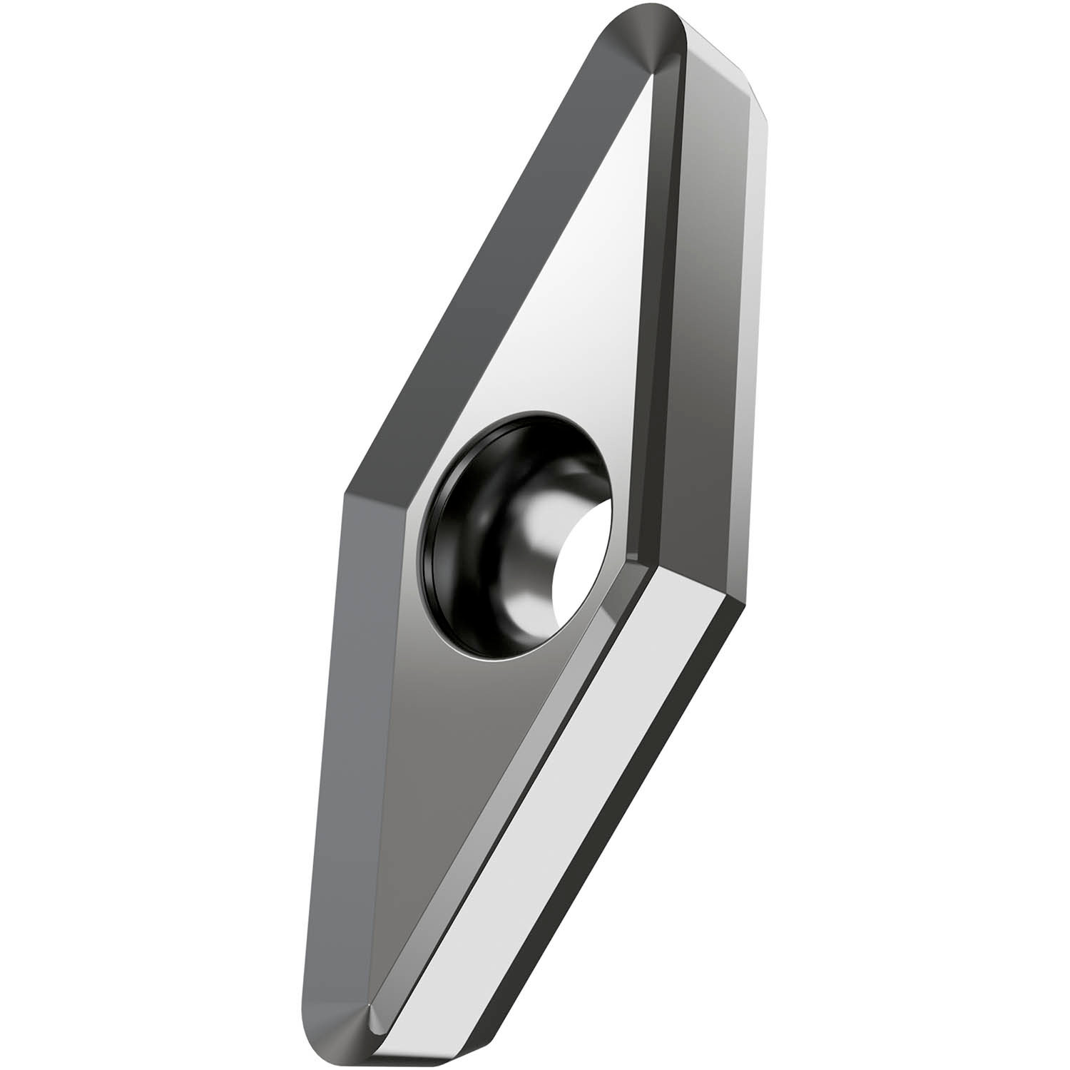 Single-sided milling insert VCGT 2205 with chip-breakers, 35° rhomboid for a maximum depth of cut of 16.0mm, with 3.0mm corner radius, an indexing accuracy according to ISO-tolerance class-G and FA geometry with sharp cutting edges, HF7 uncoated fine grained WC-Co carbide within ISO-grade range N10 -N25 for machining of non-ferrous metal with end mills SVC22C