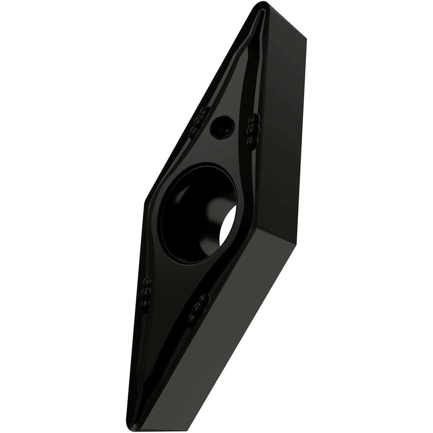 Single-sided positive turning insert, 35° rhomboid with 7° clearance, inscribed circle diameter of 9.525mm, 4.76mm thick, 0.4mm nose radius, indexing accuracy according to ISO-tolerance class-M, chip-breaker FM with rounded cutting edges, in grade T7325, a MT-CVD coated functionally graded WC-Co carbide within ISO range M10 -M25, for fine to medium machining of stainless-steels
