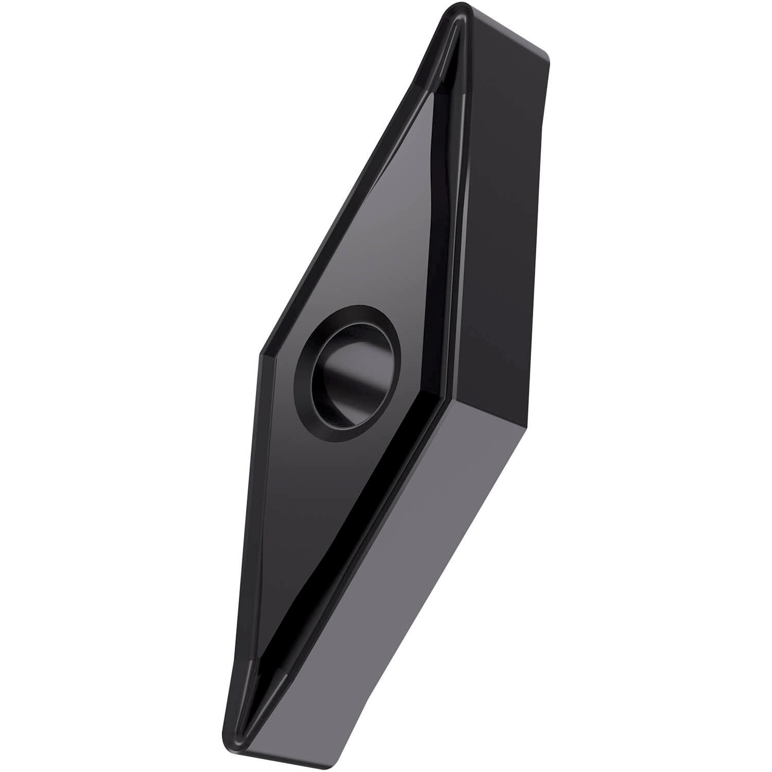 Double-sided negative turning insert, 35° rhomboid with inscribed circle diameter of 9.525mm, 4.76mm thick, 0.8mm nose radius, indexing accuracy according to ISO-tolerance class-M, chip-breaker NF with rounded cutting edges, in grade T6310, a PVD coated extra fine grained WC-Co carbide within ISO ranges P01 -P15 and M01 -M15, for fine to medium machining of steels and stainless-steels