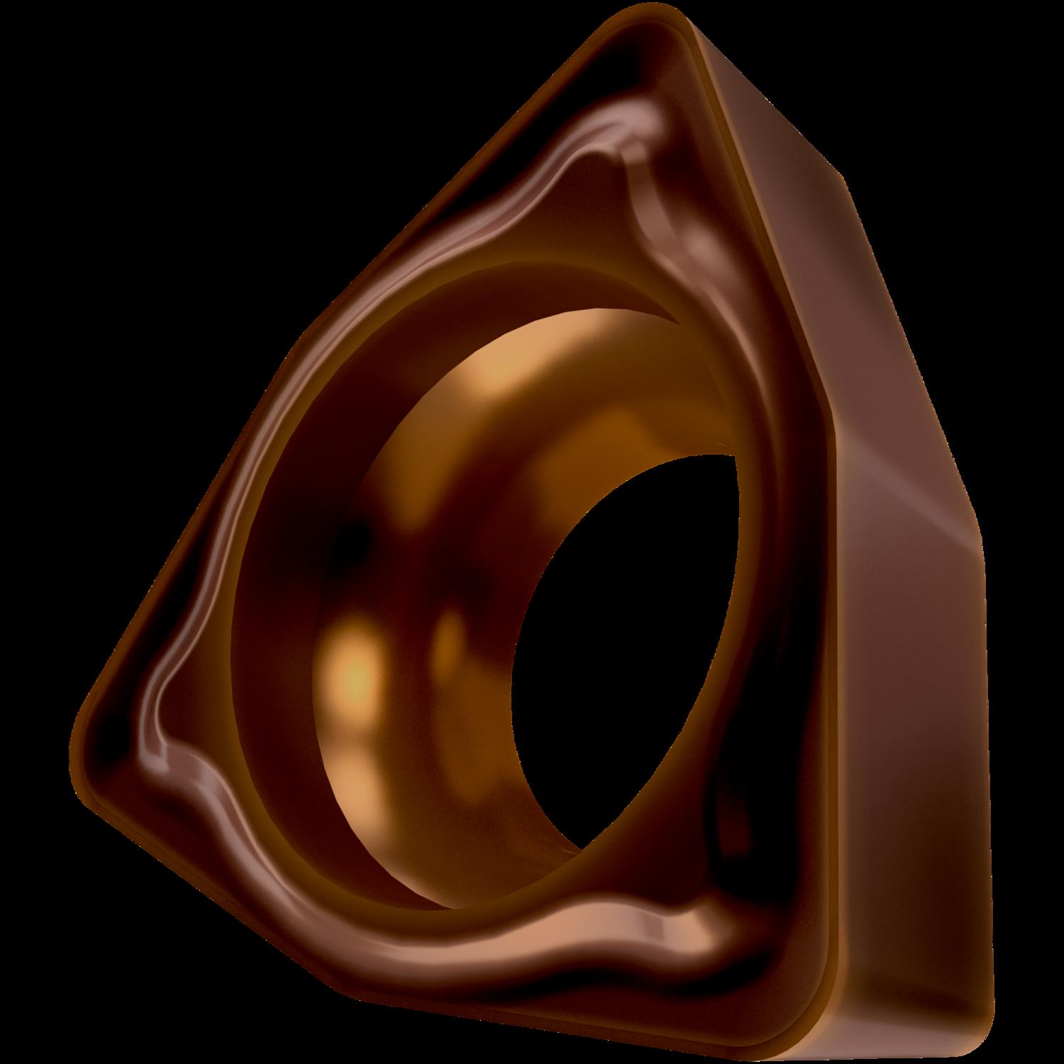 Single-sided positive turning insert, 80° trigon with 7° clearance, inscribed circle diameter of 3.97mm, 1.59mm thick, 0.4mm nose radius, indexing accuracy according to ISO-tolerance class-G, chip-breaker FF2 with rounded cutting edges, in grade T8430, a PVD coated fine grained WC-Co carbide within ISO range P20 -P40, for fine to medium machining of steels
