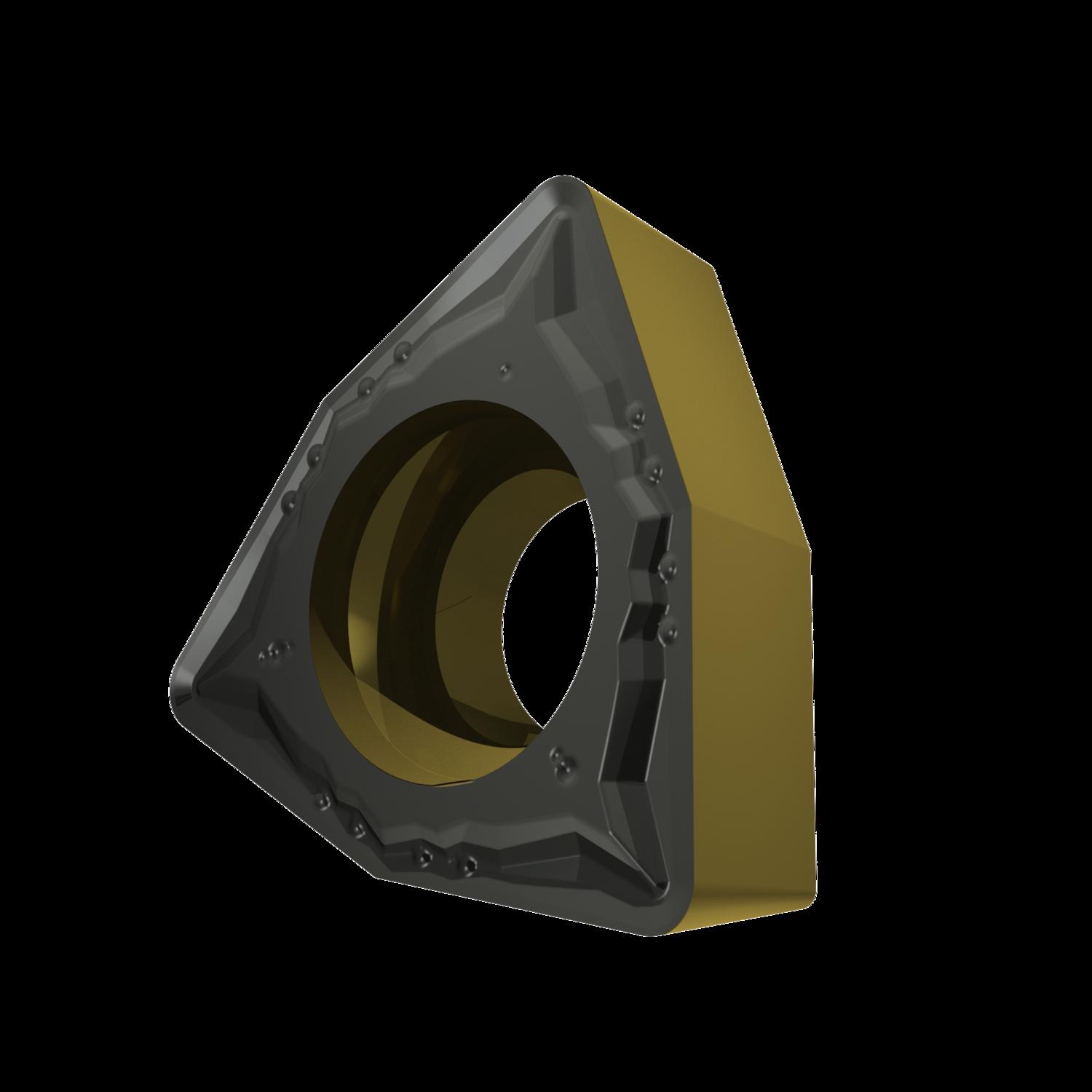 Single-sided positive turning insert, 80° trigon with 7° clearance, inscribed circle diameter of 9.525mm, 3.97mm thick, 0.8mm nose radius, indexing accuracy according to ISO-tolerance class-M, chip-breaker FM with rounded cutting edges, in grade T9415, a MT-CVD coated functionally graded WC-Co carbide within ISO range P05 -P30, for fine to medium machining of steels