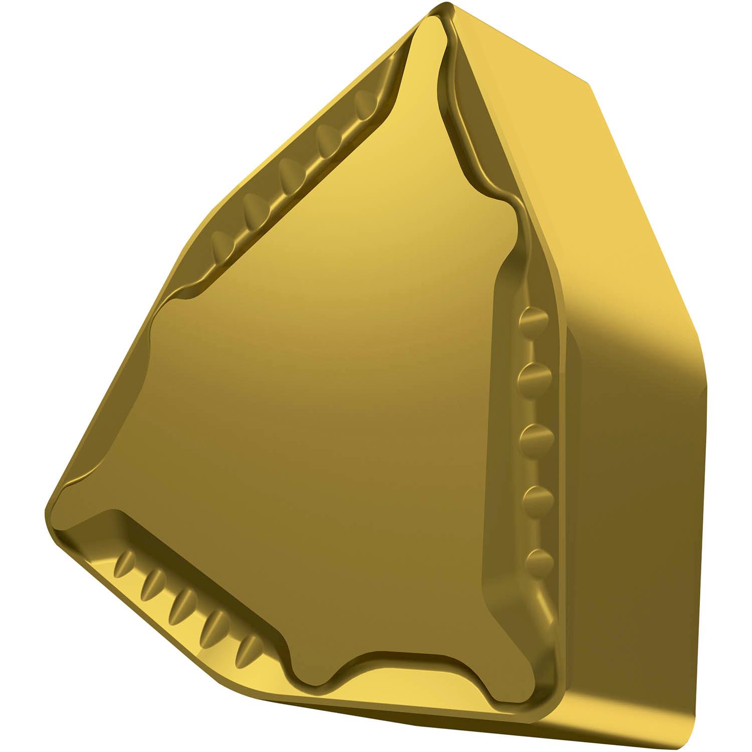 Double-sided negative barpeeling insert, 80° trigon with inscribed circle diameter of 31.75mm, 13mm thick for 8mm depth of cut, indexing accuracy according to ISO-tolerance class-M, chip-breaker PM with S01 cutting edge preperation, in grade T9226, a MT-CVD coated functionally graded WC-Co carbide within ISO range P15 -P35, for high strength steels
