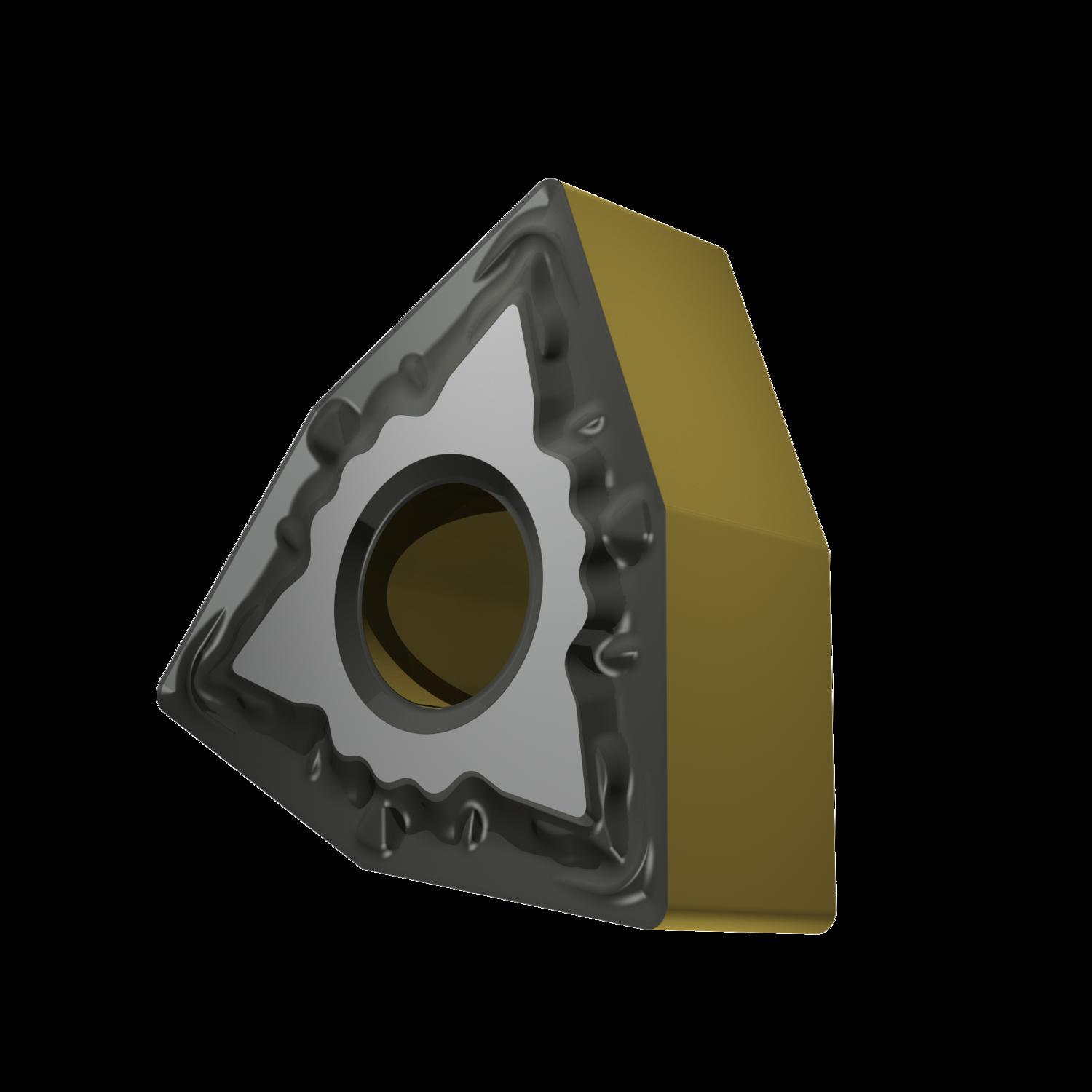 Double-sided negative turning insert, 80° trigon with inscribed circle diameter of 9.525mm, 4.76mm thick, 0.4mm nose radius, indexing accuracy according to ISO-tolerance class-M, chip-breaker FM with rounded cutting edges, in grade T9415, a MT-CVD coated functionally graded WC-Co carbide within ISO range P05 -P30, for fine to medium machining of steels