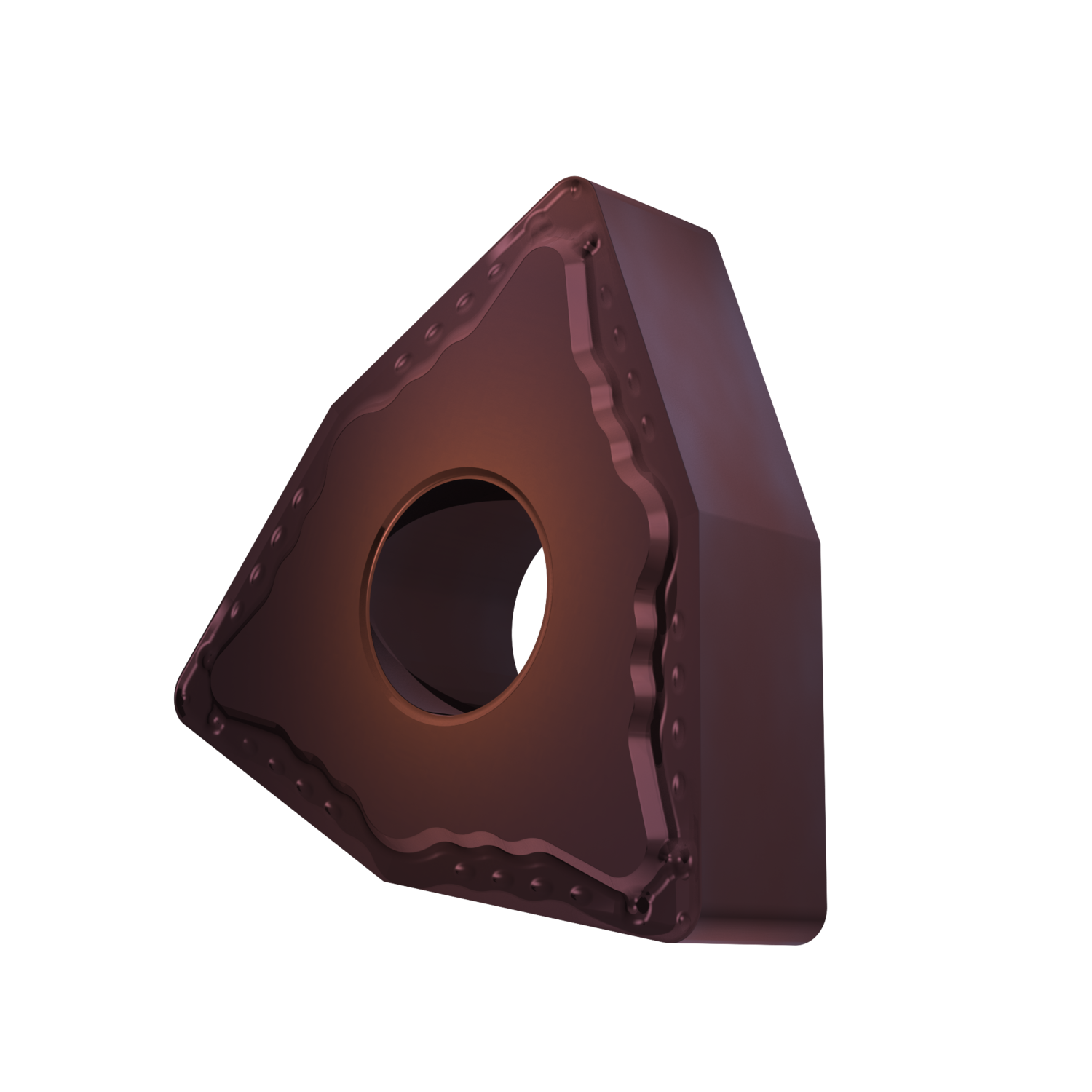 Double-sided negative turning insert, 80° trigon with inscribed circle diameter of 12.7mm, 4.76mm thick, 0.8mm nose radius, indexing accuracy according to ISO-tolerance class-M, chip-breaker FF with rounded cutting edges, in grade T8415