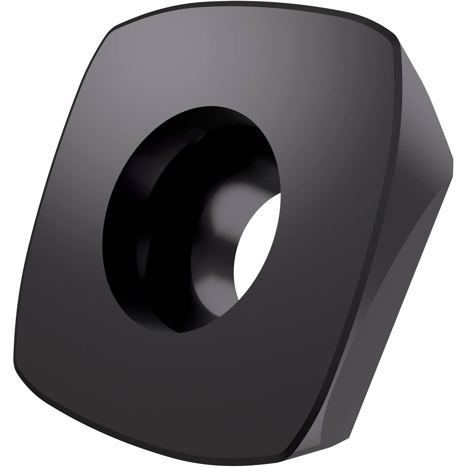 Single-sided milling insert ZDEW 1204 with a plane rake surface, special shape and high-feed design for a maximum depth of cut of 1.6mm, with 0.8mm corner radius, an indexing accuracy according to ISO-tolerance class-E, M8325 PVD coated WC-(Ti, Ta, Nb)C-Co carbide